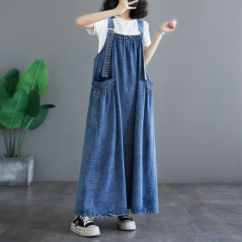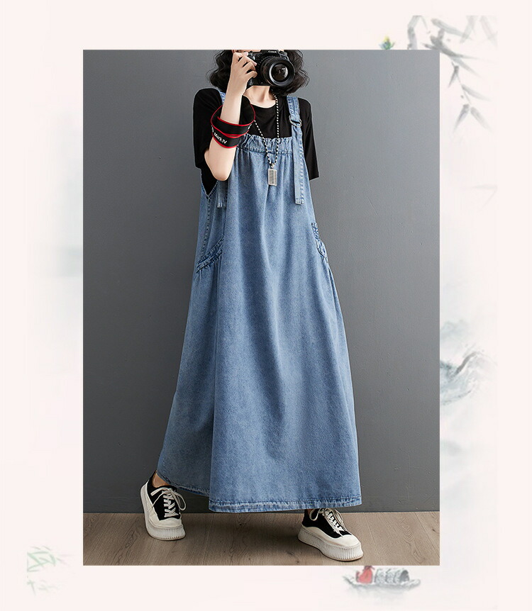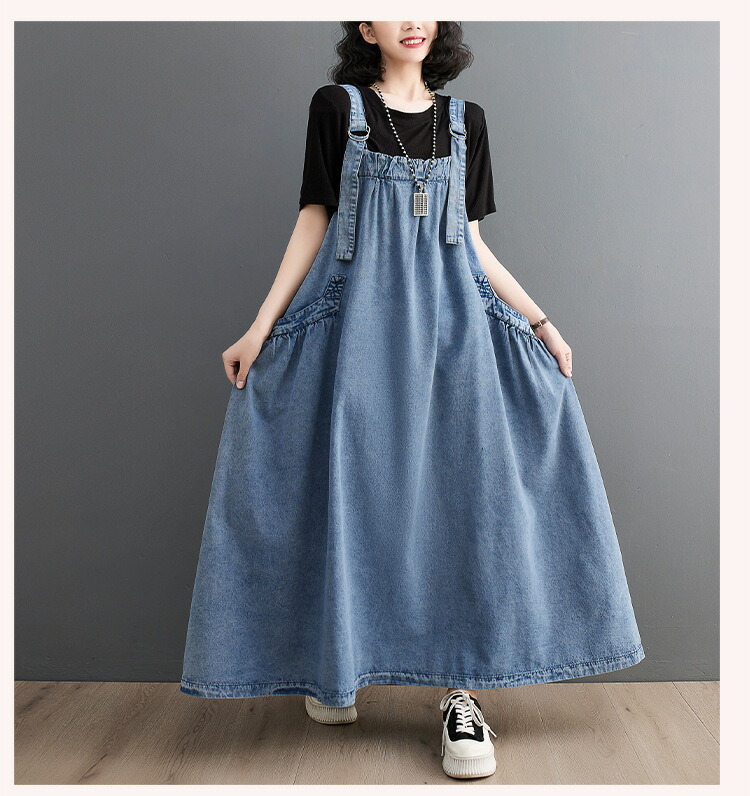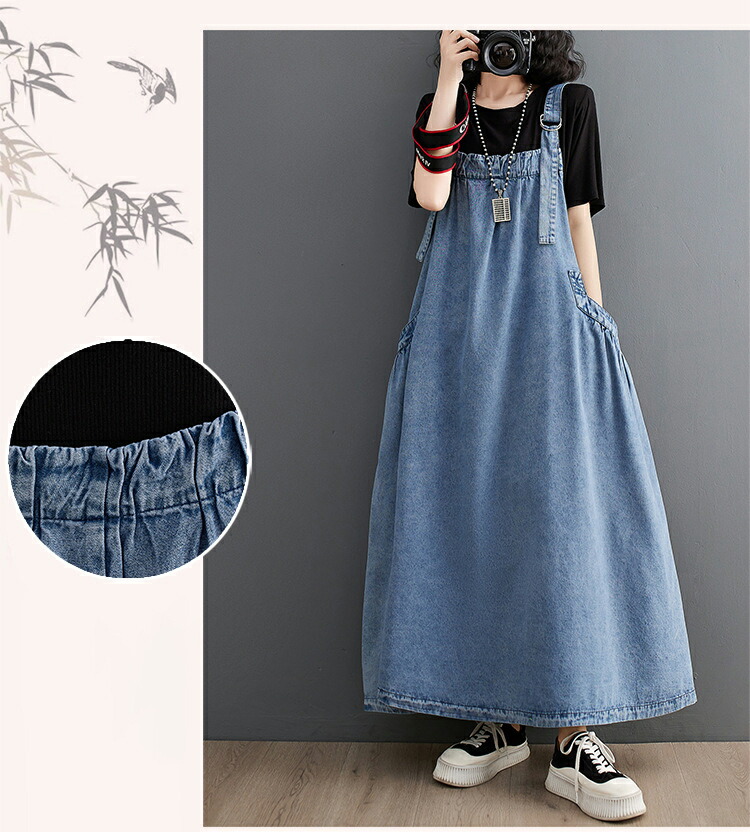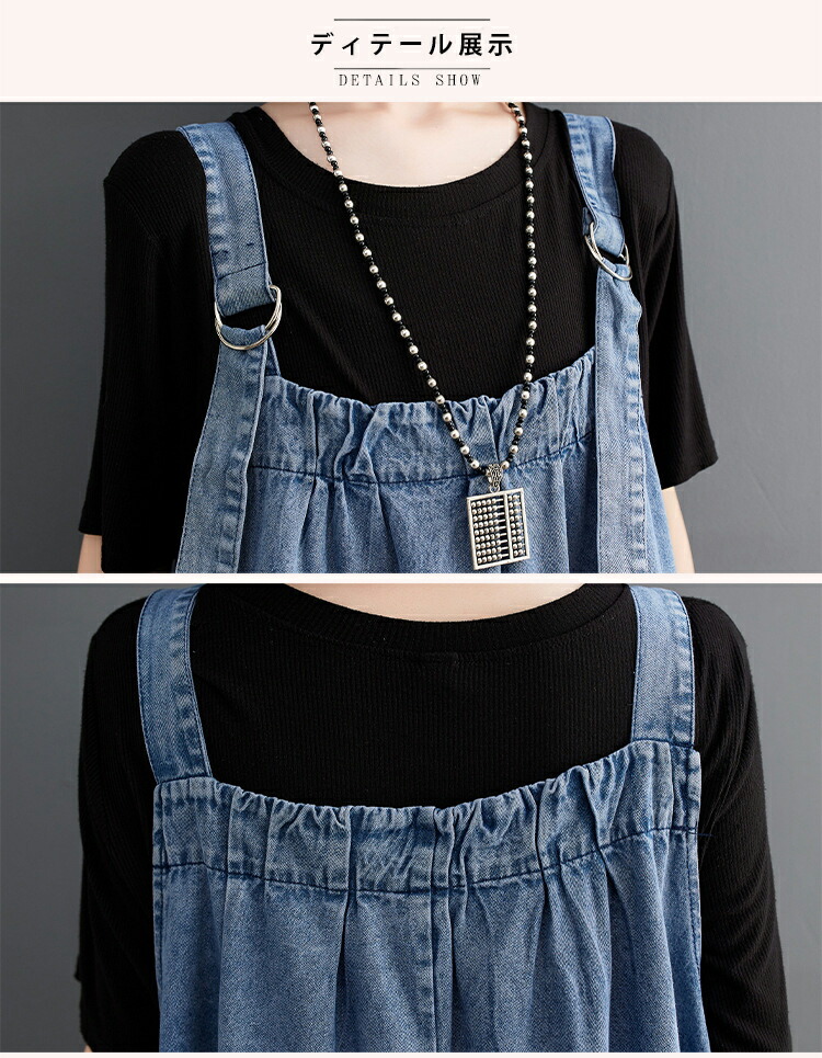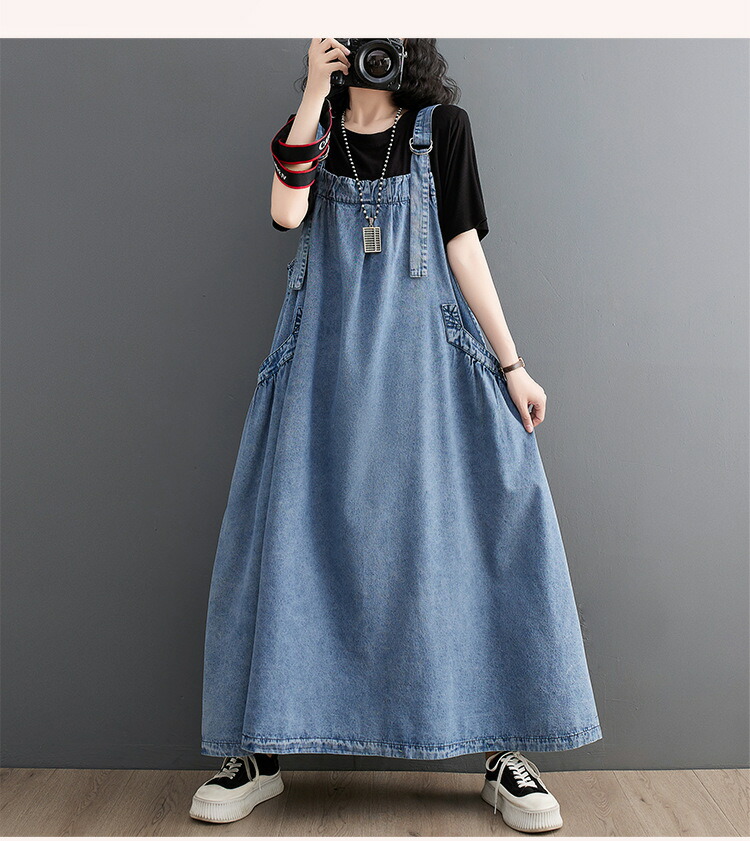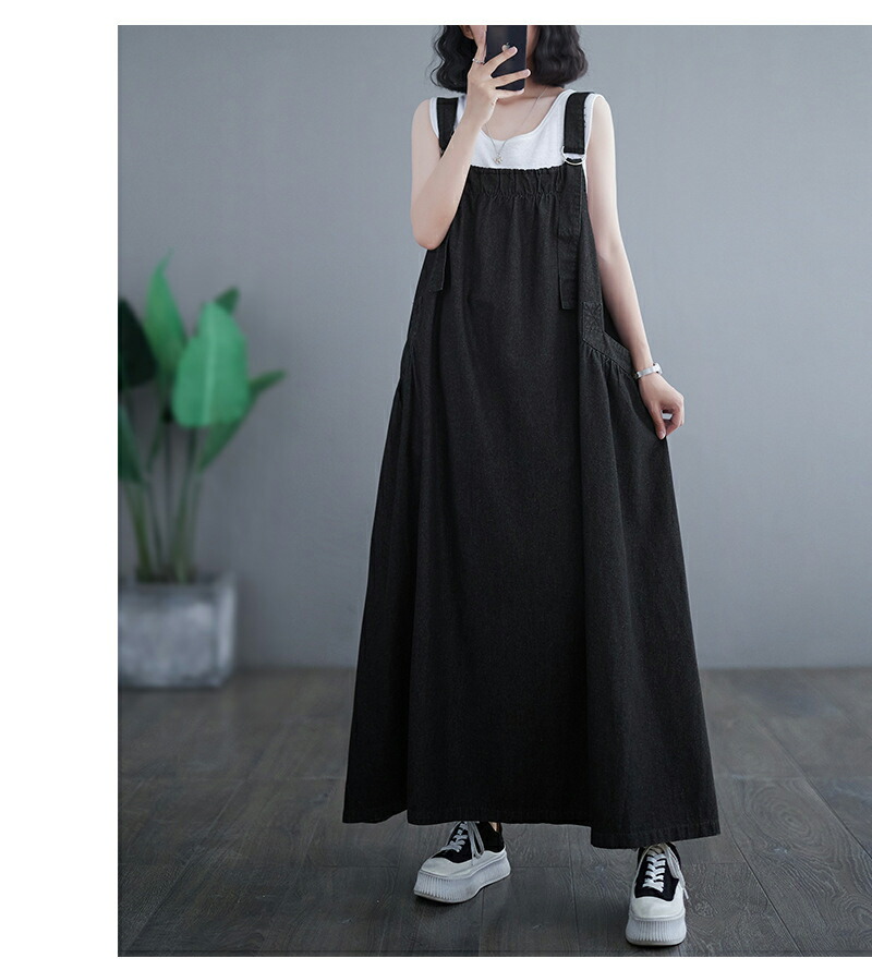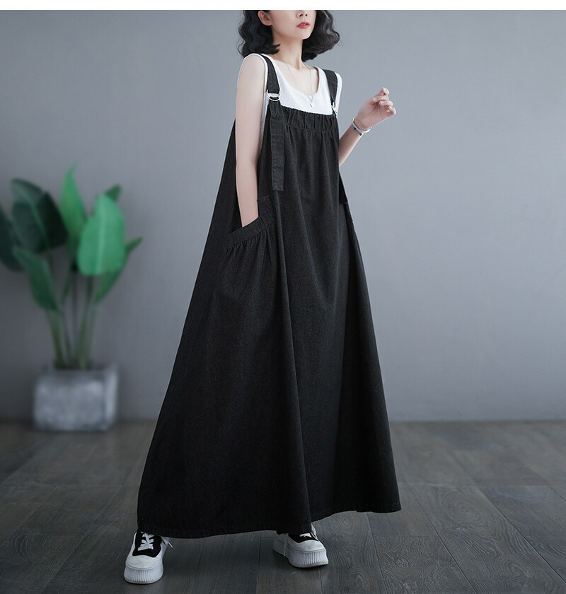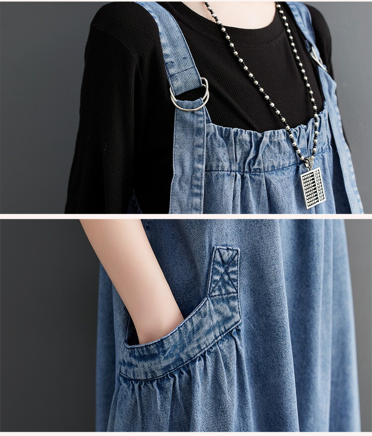ワンピース 夏ワンピ デニムサロペット ワンピース 続々登場 ブラック ブルー M L XL XXL