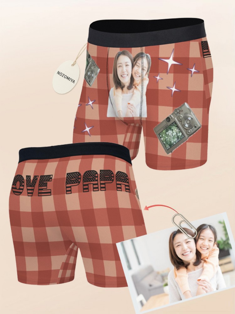 下着 ボクサーブリーフ 写真入りパンツ ユニセックス インナー 下着 豊富 レッドチェック ブラウンチェック ブルーチェック グリーンチェック S M L XL 2XL 3XL