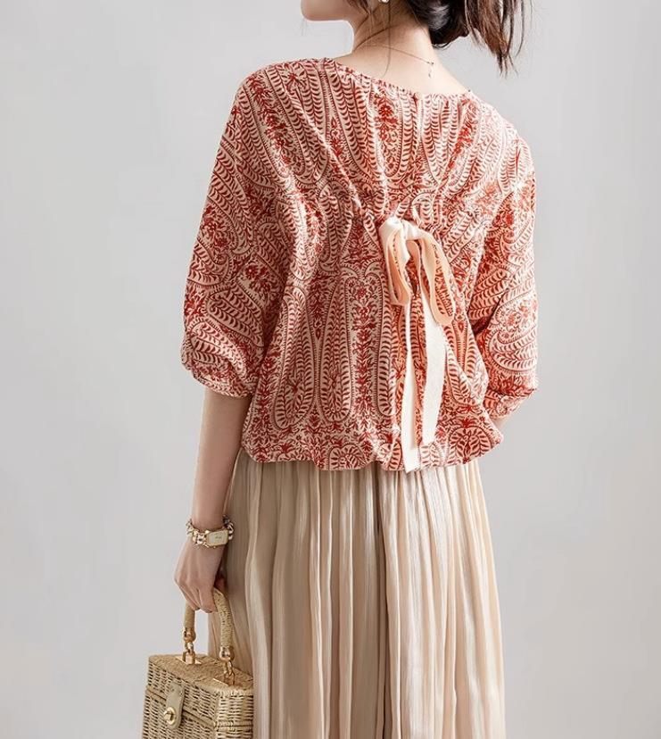 シアースリーブ ドッキングシャツ ボウタイシャツブラウス