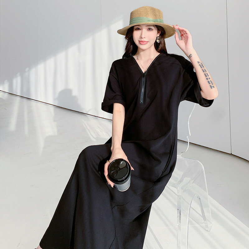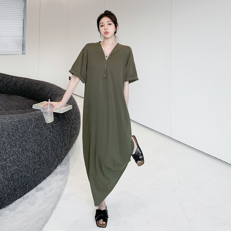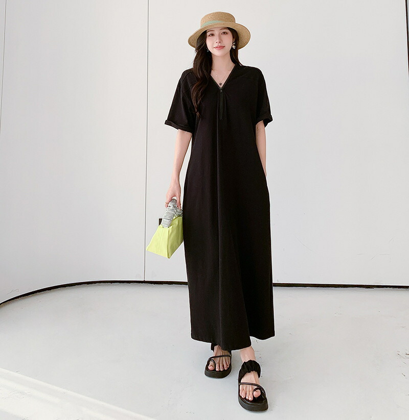 ワンピース 夏ワンピ ロング丈 半袖 ワンピース 超目玉商品 グリーン ブラック M L LL 3L