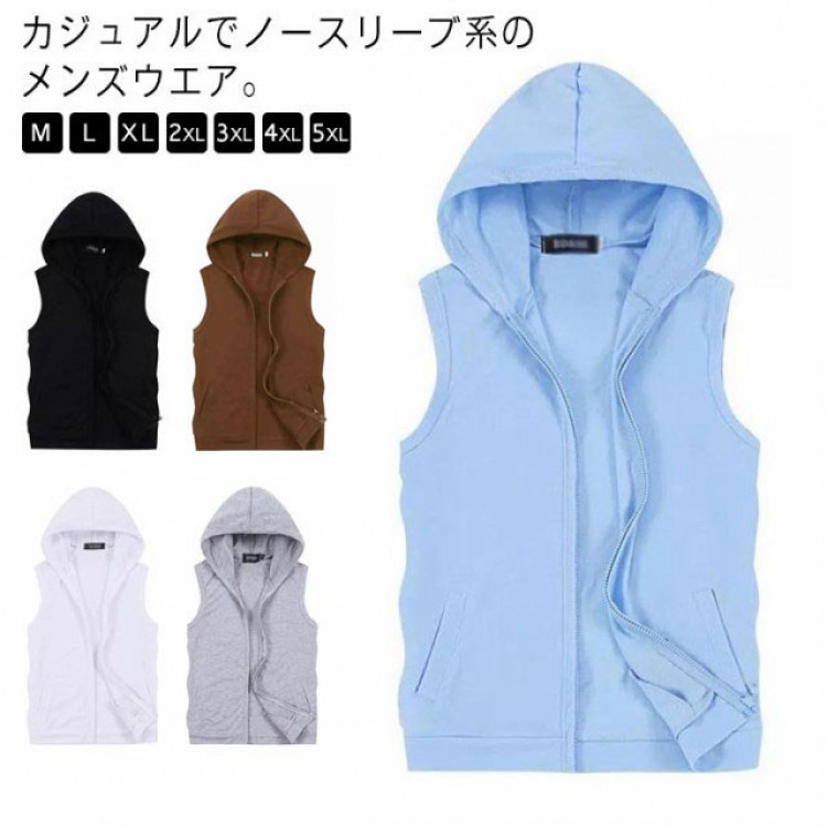 ノースリーブパーカー ジム Tシャツ トップス パーカー 新登場! ホワイト ライトグレー ブラック ライトブルー ブラウン M L XL 2XL 3XL 4XL 5XL
