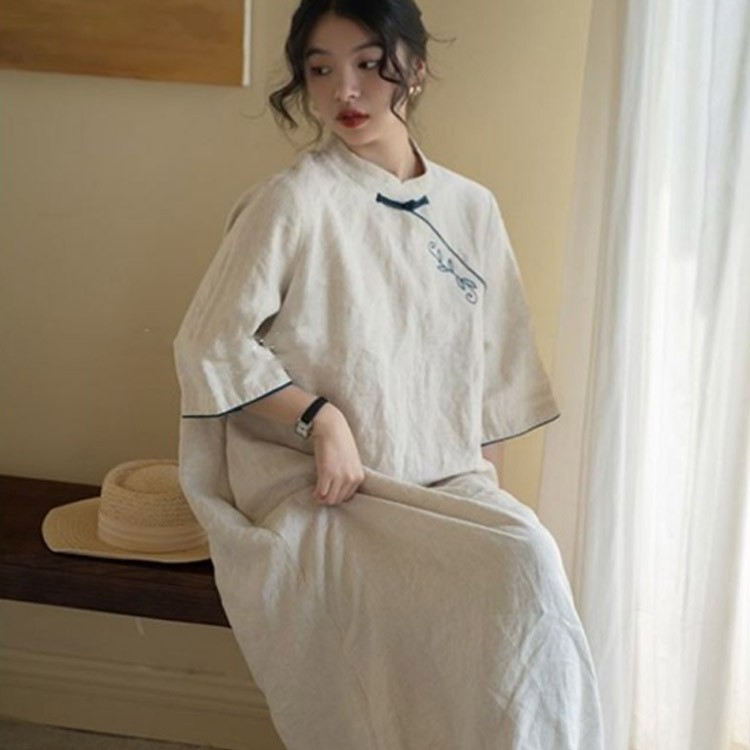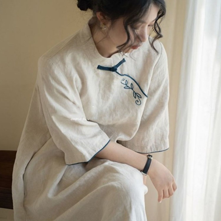 チャイナボタン ナチュラル 半袖 チャ ベージュ ピンク S M L XL 2XL 3XL 4XL