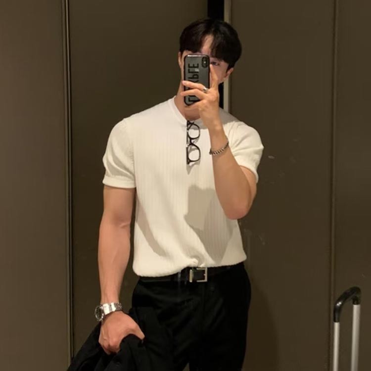 ニットトップス tシャツ メンズ 涼し メンズファッション 特集 ネイビー ホワイト グリーン ブラック ブラウン M L XL 2XL 3XL