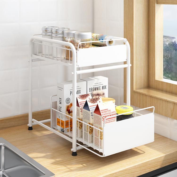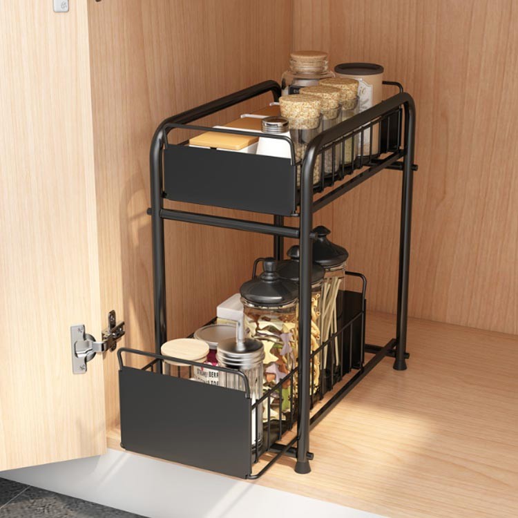 シンク下収納 スライド式 ラック 2段 ホワイトS ホワイトL ブラックS ブラックL