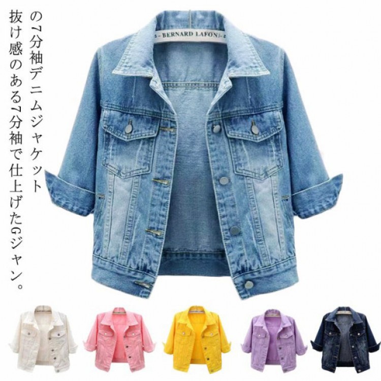 デニムジャケット 七分袖 レディース レディースファッション 早い者勝ち ホワイト ピンク イエロー パープル ダークブルー ライトブルー S M L XL 2XL 3XL 4XL 5XL