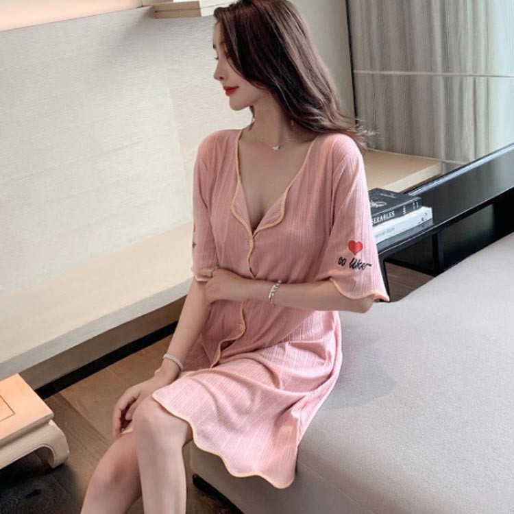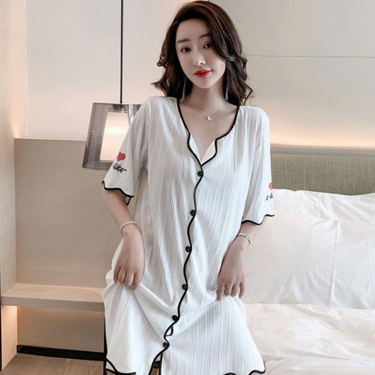レディース ワンピース 半袖 パジャマ ブルー ピンク ホワイト M L XL 2XL