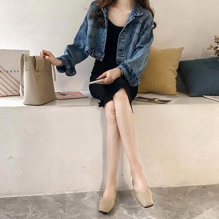 デニムパンツ ビジュー付き