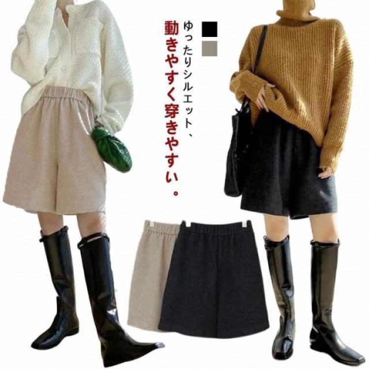 短パン ハーフパンツ レディース ショ ブラック アイボリー S M L XL 2XL 3XL