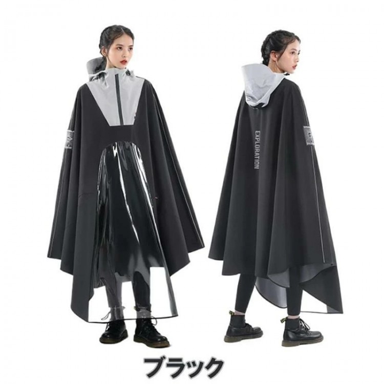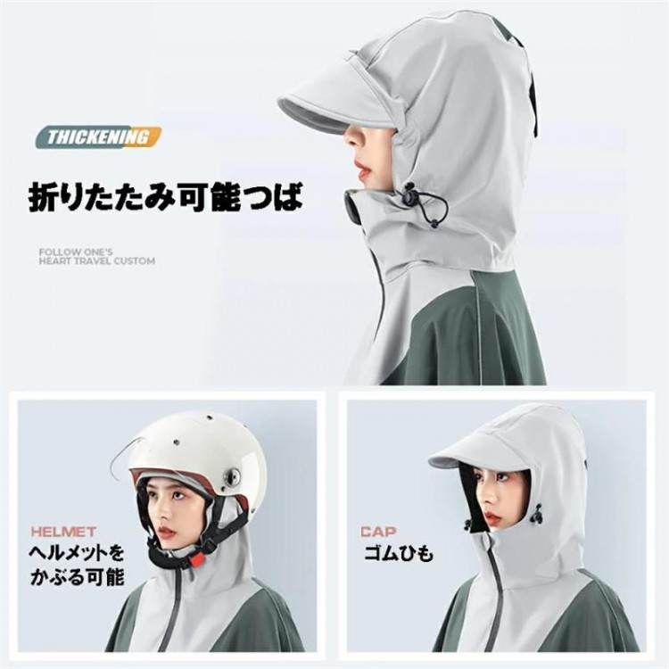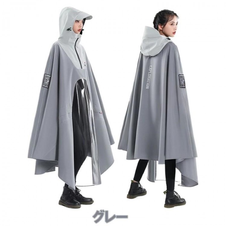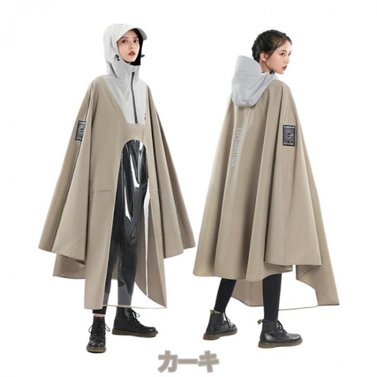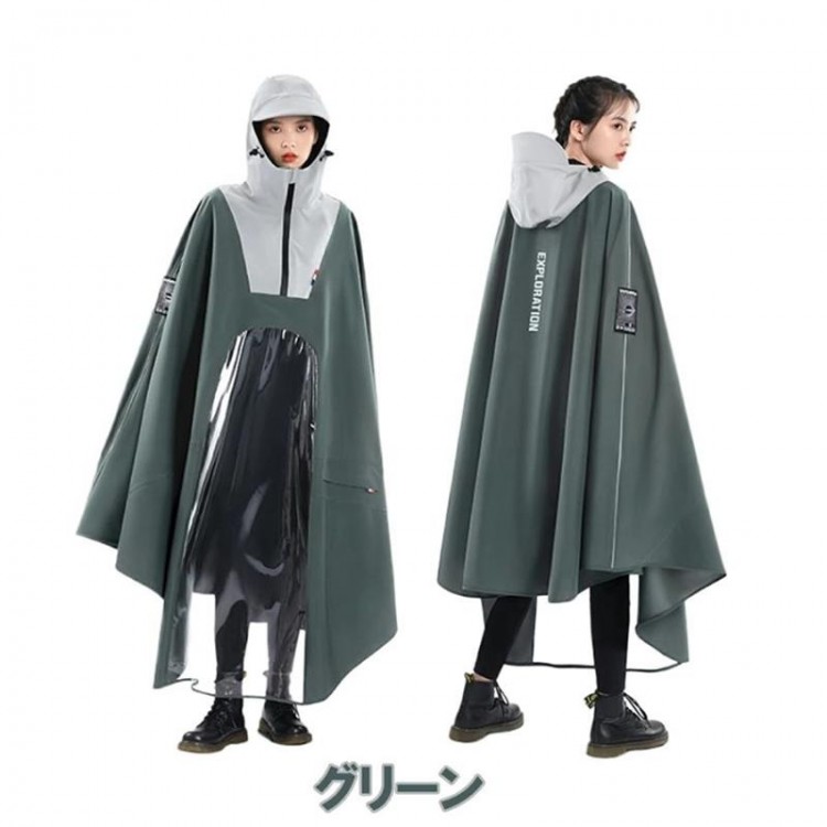 男女兼用 レインコート 自転車 防水 レディースファッション 新作 ブラック グレー グリーン カーキ ブルー 3XL(鏡なし) 4XL(鏡なし) 4XL(鏡付き) 5XL(鏡付き)