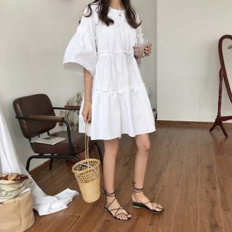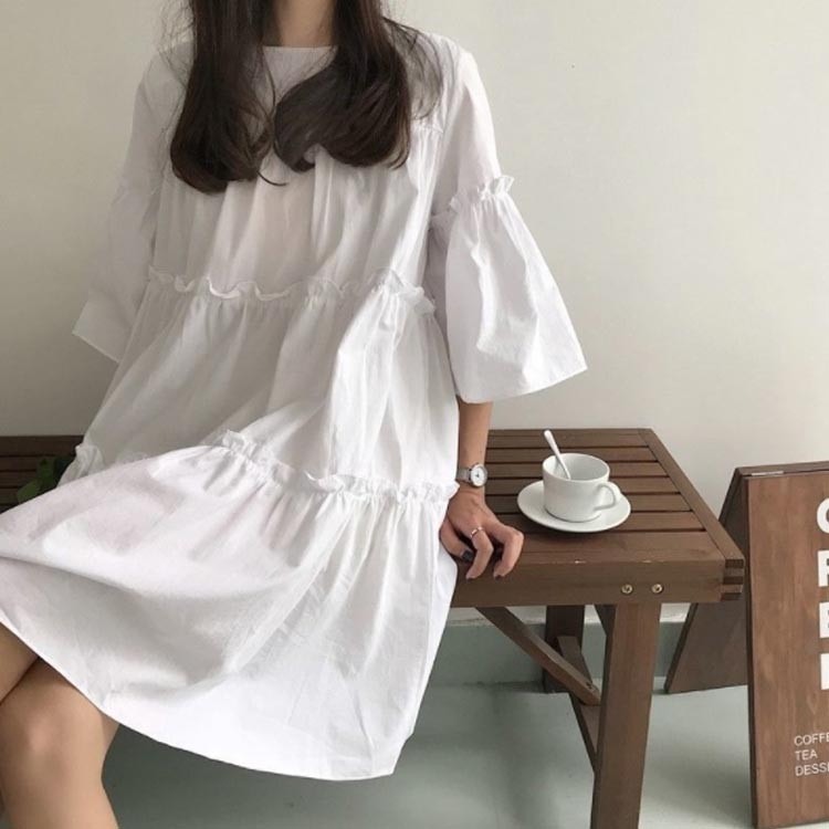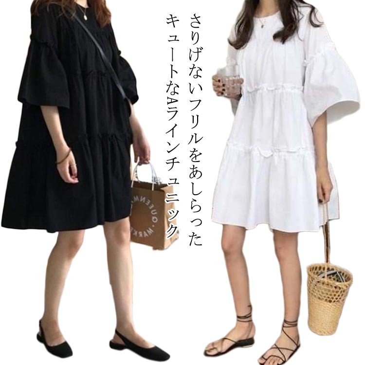 Aライン チュニック ワンピース チュ ホワイト ブラック M(40-50KG) L(50-60KG) XL(60-75KG) 2XL(75-100KG)