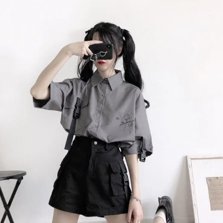 地雷系 女子 セットアップ レディース トップス シャツ ブラウス 新登場! シャツグレー+パンツブラック シャツホワイト+パンツブラック S M L XL 2XL