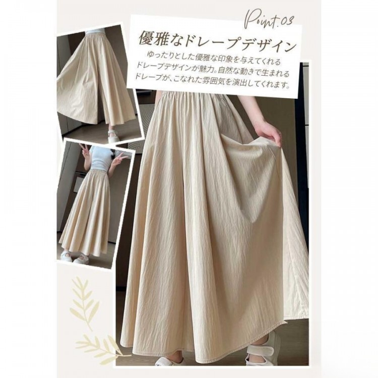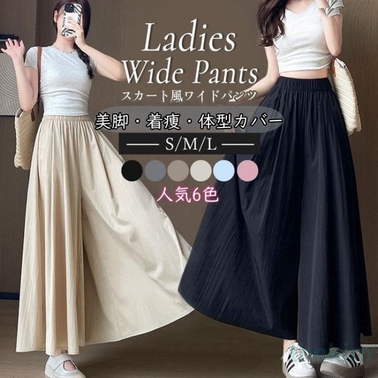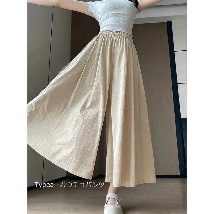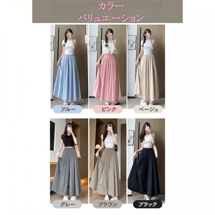 ワイドパンツ レディース 夏涼感 ガウ レディースファッション 人気 ブルー ピンク ベージュ グレー ブラウン ブラック ガウチョパンツ ロングスカート