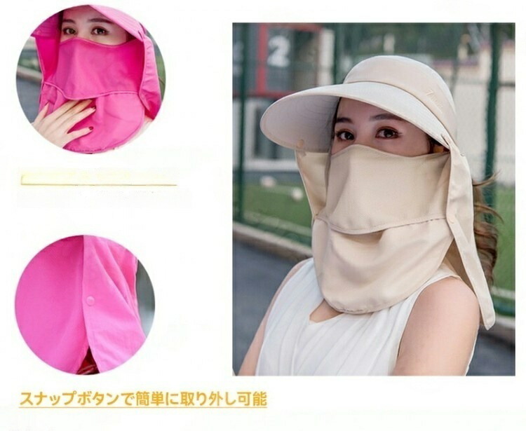 日除け帽子 4way UVカット 紫外線対策 日焼け防止 グッズ 春 夏 秋 日よけ 帽子 農作業 フェイスカバー 水分補給 ネックカバー キャップ サンバイザー レディース UPF50+ 4way 折りたたみ 収納 ボタン取り外し 顎紐 つば広 無地 スポーツ