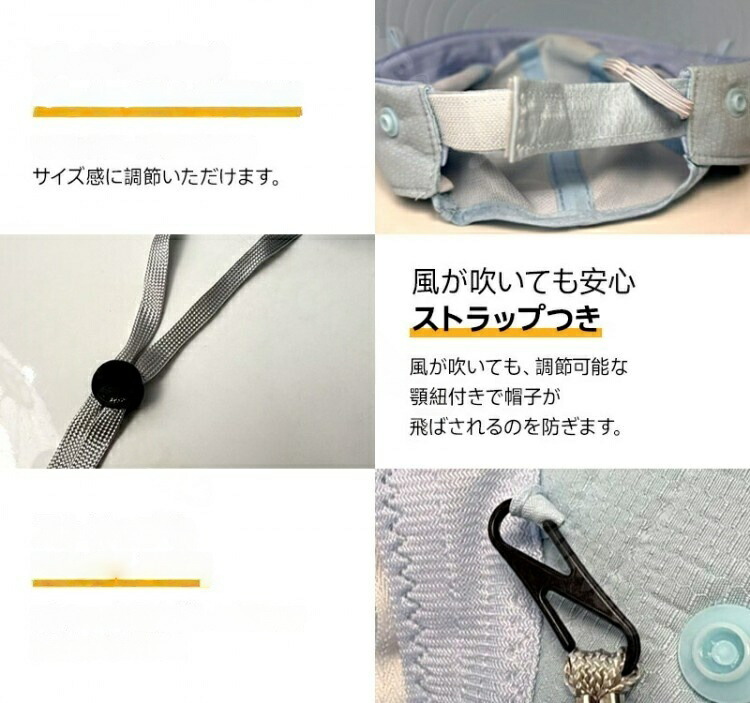 風が吹いても、調節可能な顎紐付きで帽子が飛ばされるのを防ぎます。
