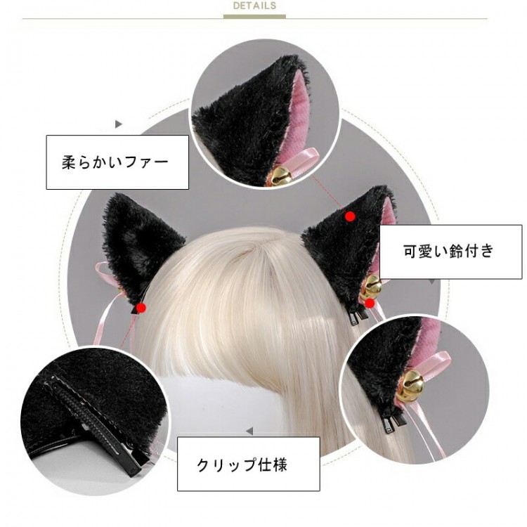 クリップ 猫耳 カチューシャ けもみみ ジュエリー アクセサリー 続々登場 グレー ピンク ブラック ホワイト 茶色