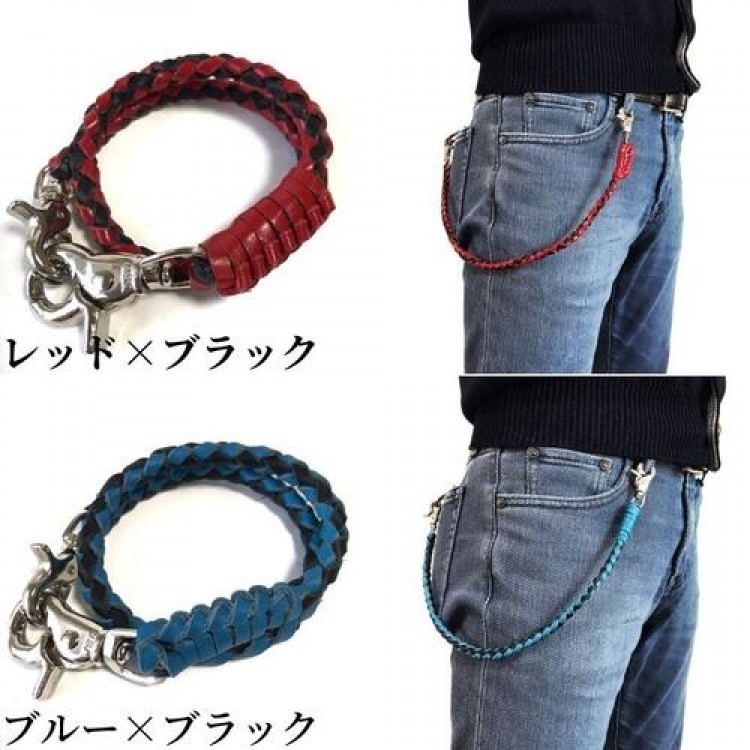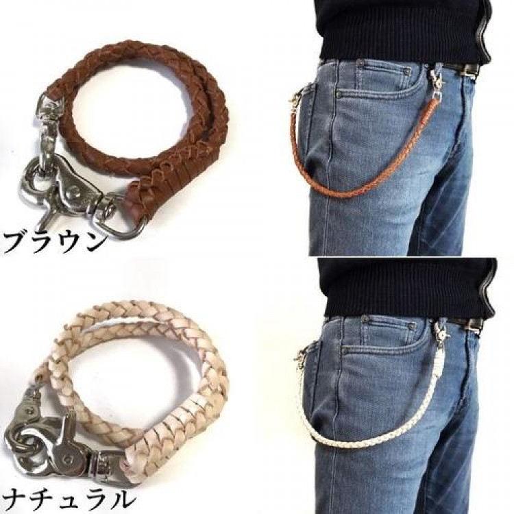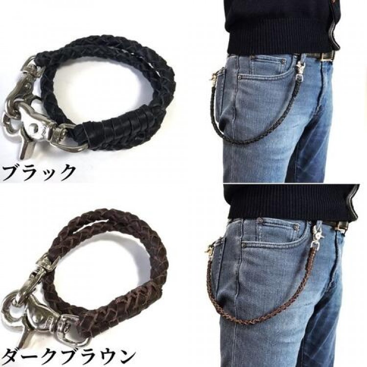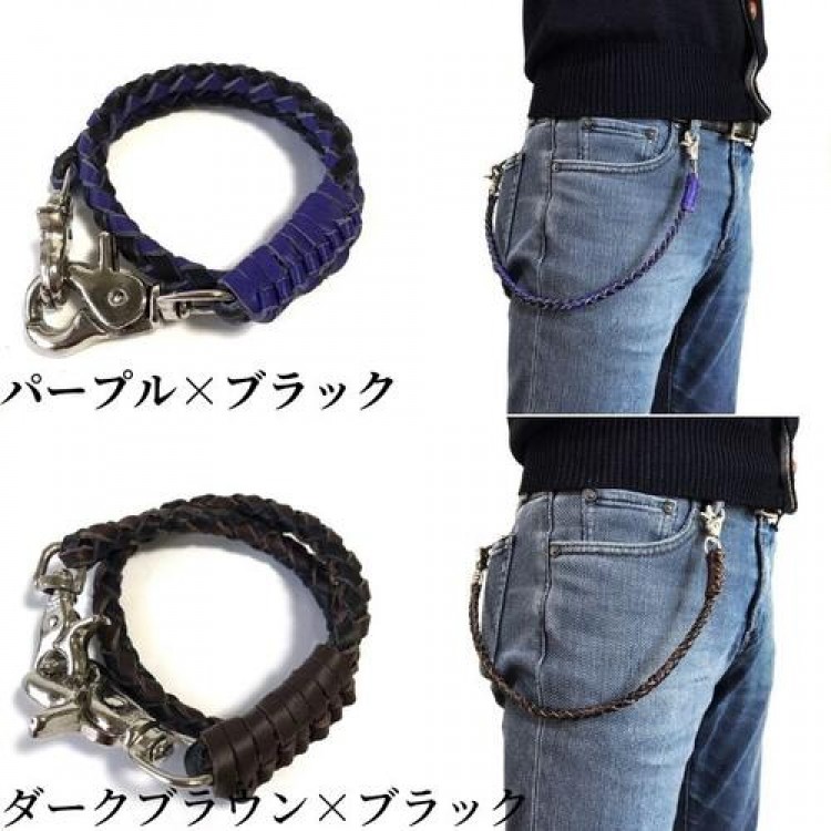 ウォレットチェーン 革 4本手編み 4 メンズジュエリー アクセサリー ウォレットチェーン 新登場! ブラック ダークブラウン ブラウン ブラック×ダークブラウン ブラック×レッド ナチュラル ブラック×ブルー ブラック×パープル