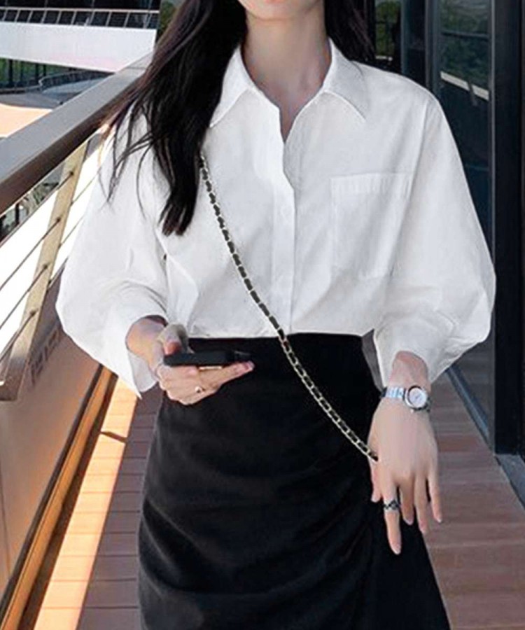 シャツブラウス レディース 七分袖シャ レディースファッション 新登場! ホワイト/L ホワイト/M