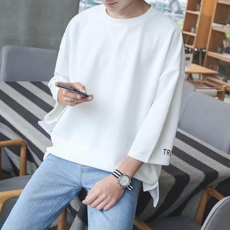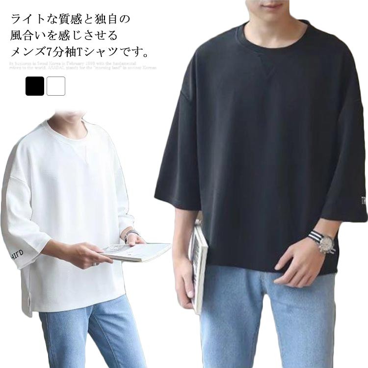 Tシャツ メンズ 七分袖 プルオーバー メンズファッション 通販 ブラック ホワイト M L XL 2XL