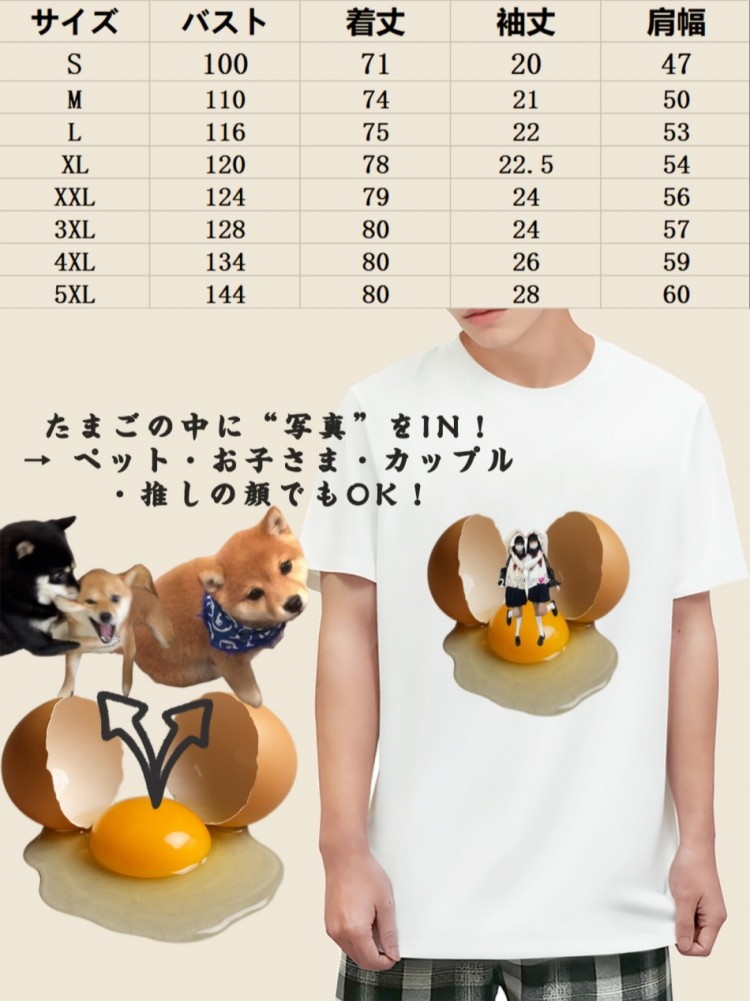 オーダーメイド Tシャツ 写真入り 名 トップス Tシャツ カットソー 特集 ホワイト ライトベージュ ブラック クリーム色 ピンク S M L XL XXL 3XL 4XL 5XL