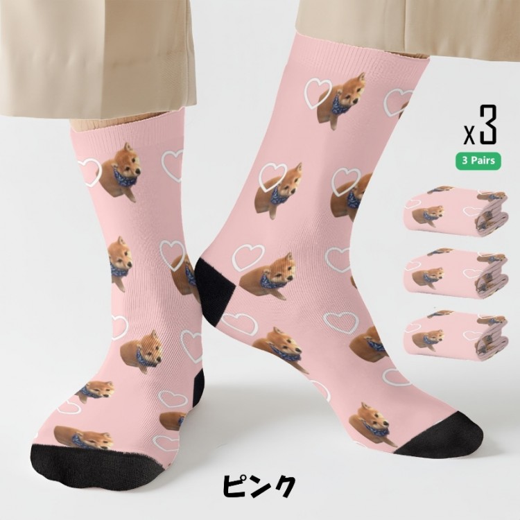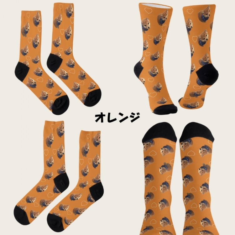 靴下 オーダーメイド 写真入り ペット メンズ 靴下 レッグウェア ステテコ 早い者勝ち S M L ブラック パープル オレンジ ピンク