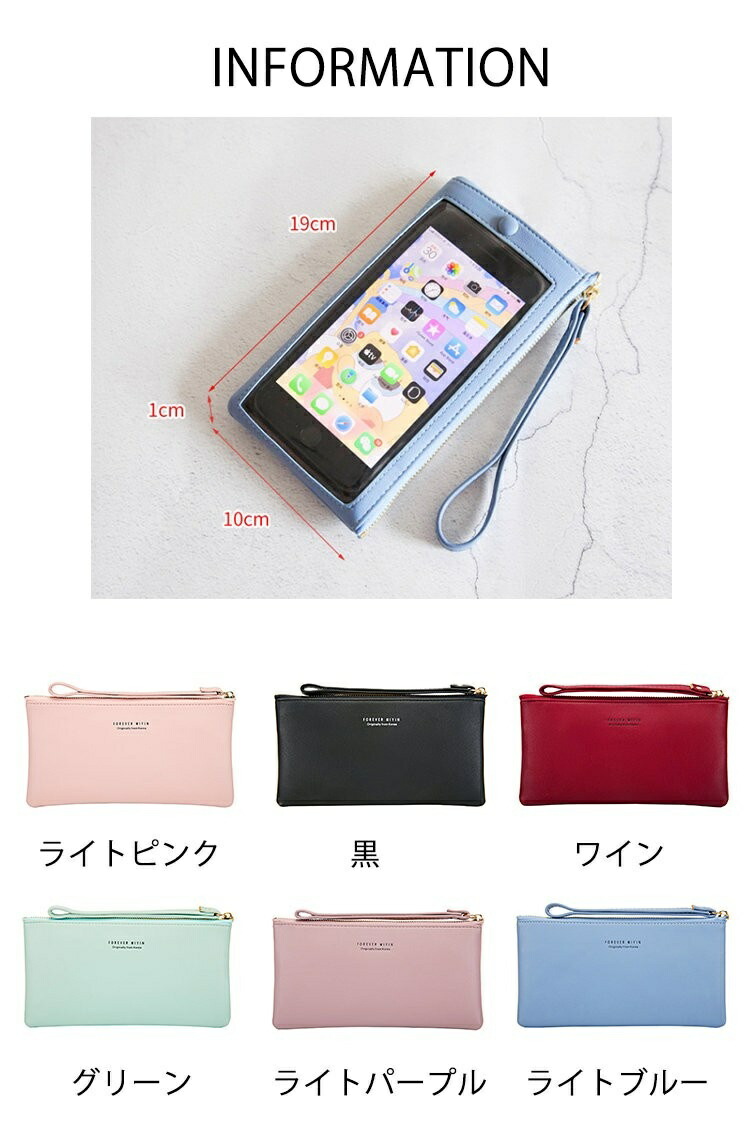 財布 レディース 透明窓 スマホバッグ 財布 ケース レディース財布 続々登場 黒 ライトピンク グリーン ワイン ライトパープル ライトブルー