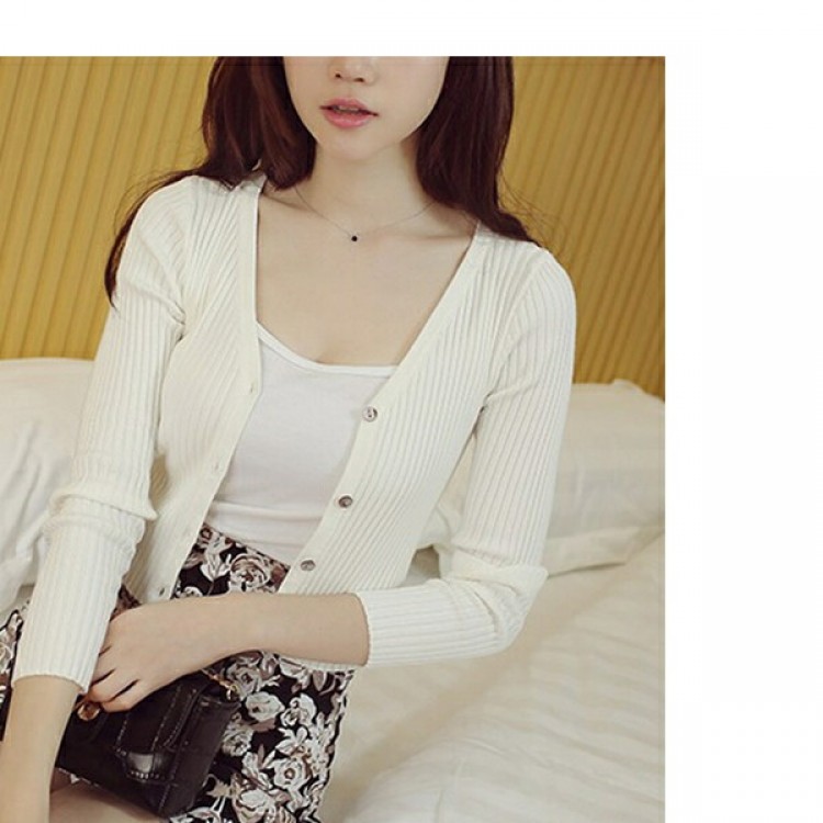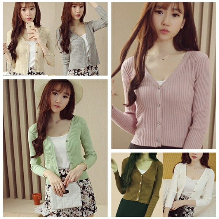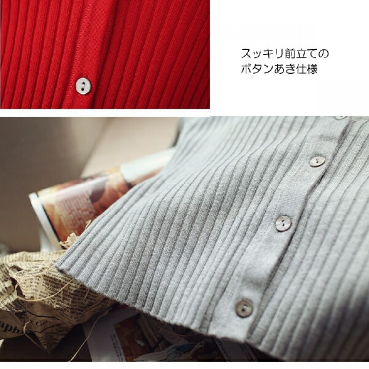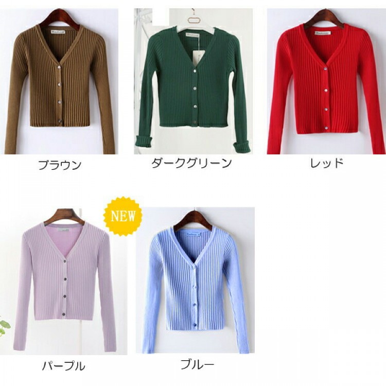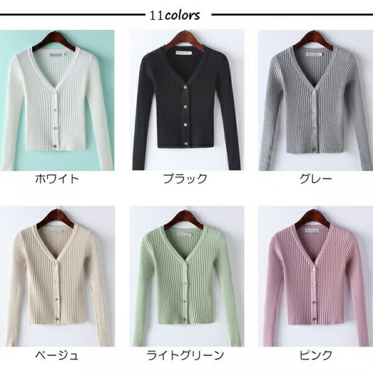 1B26 Vネックリブ編みショートカー ホワイト ブラック グレー ベージュ ピンク ダークグリーン レッド パープル ブルー