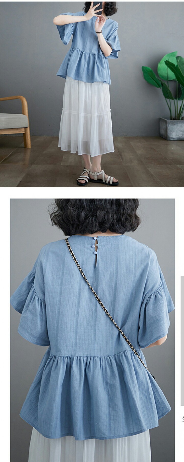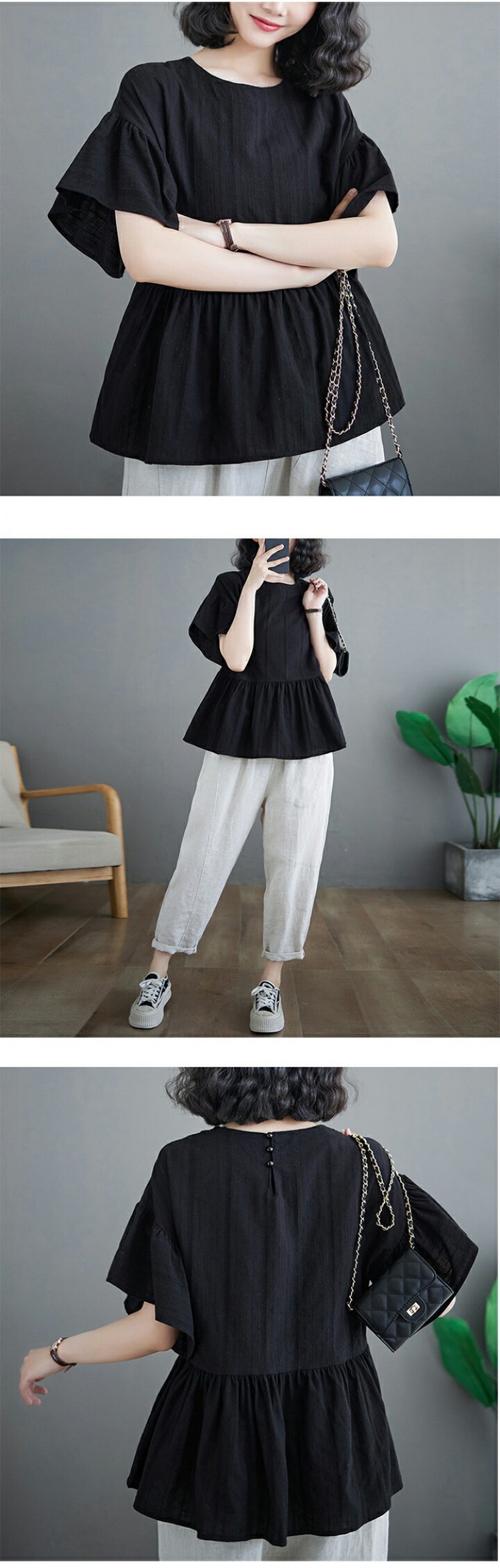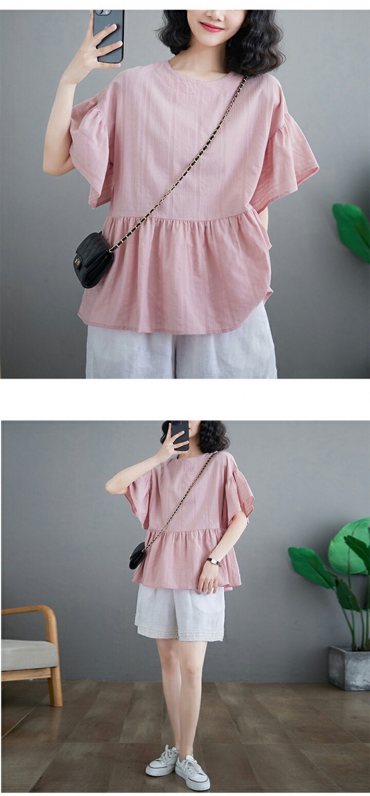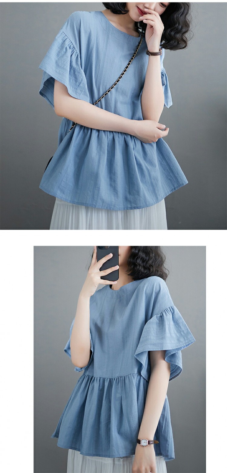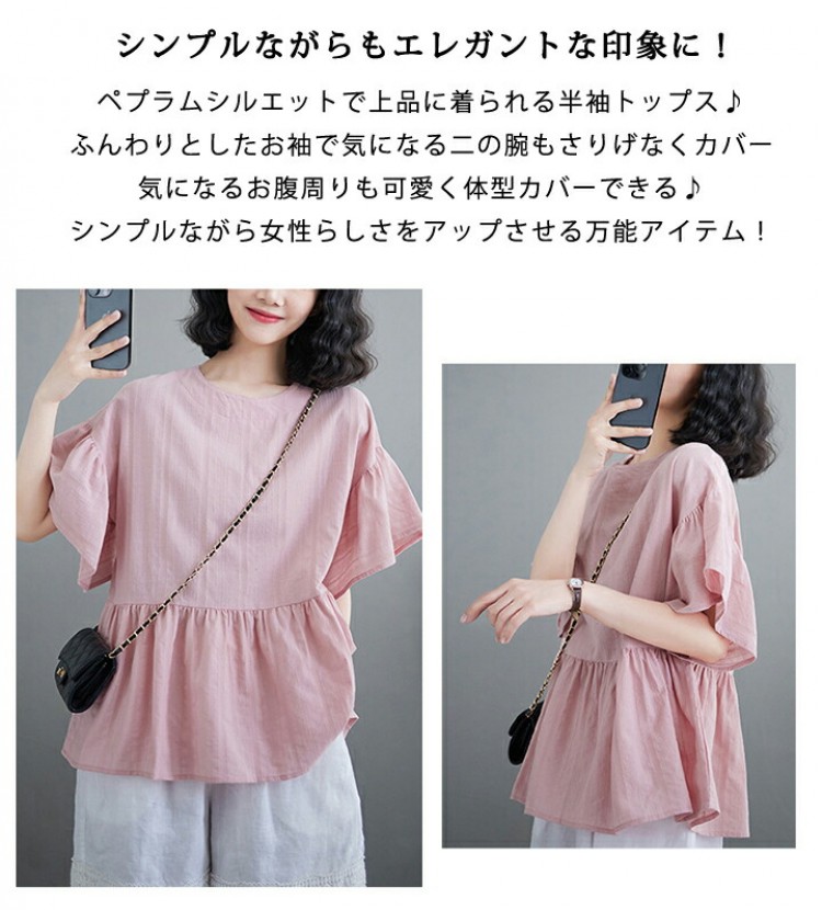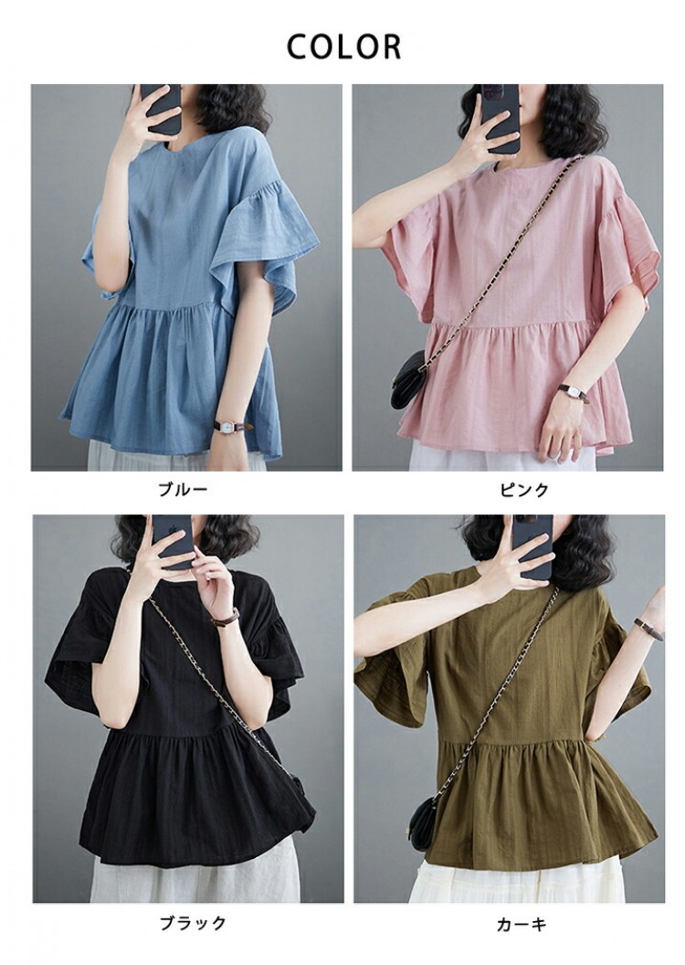 ペプラムトップス ペプラムカットソー レディースファッション 人気 M L ブルー ピンク ブラック カーキ