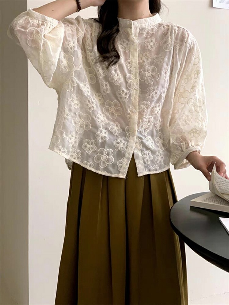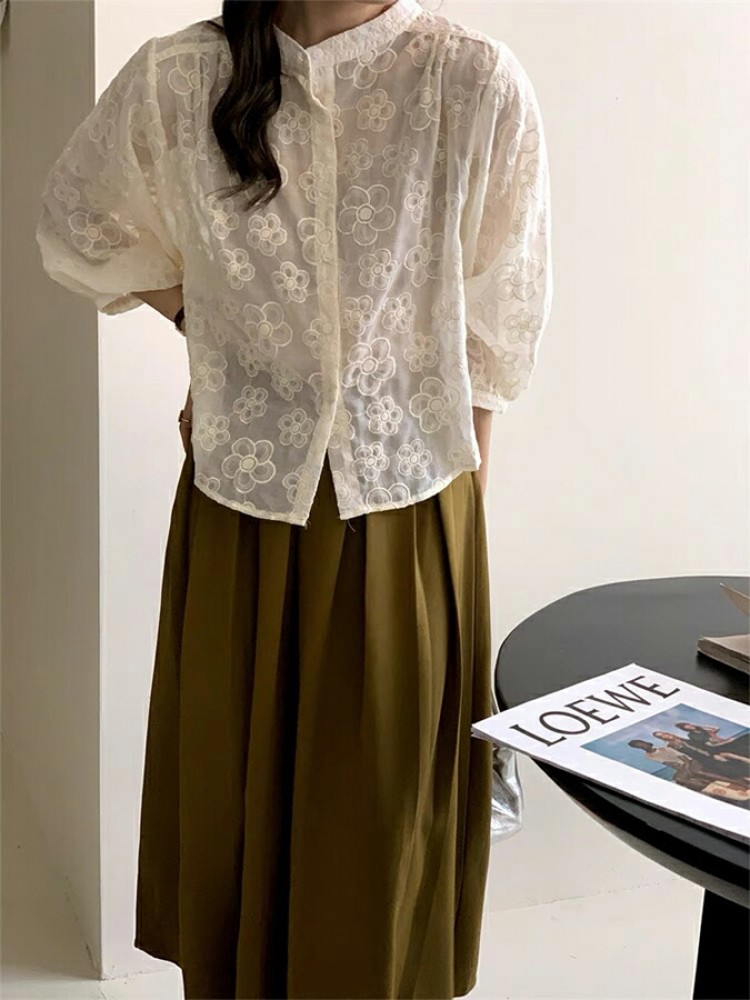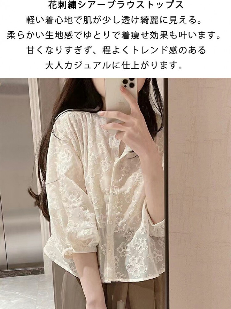 花柄刺繍シアー素材トップス ブラウス レディースファッション 超目玉商品 S M L