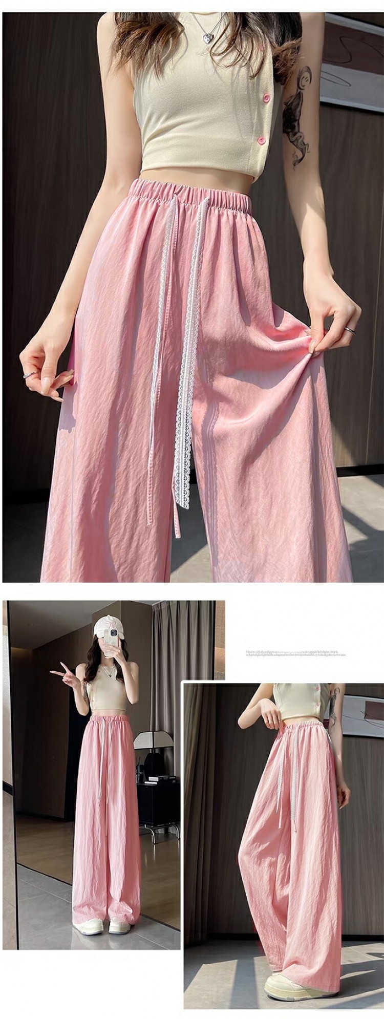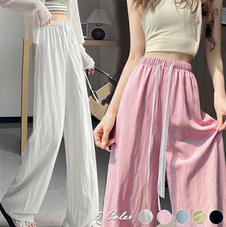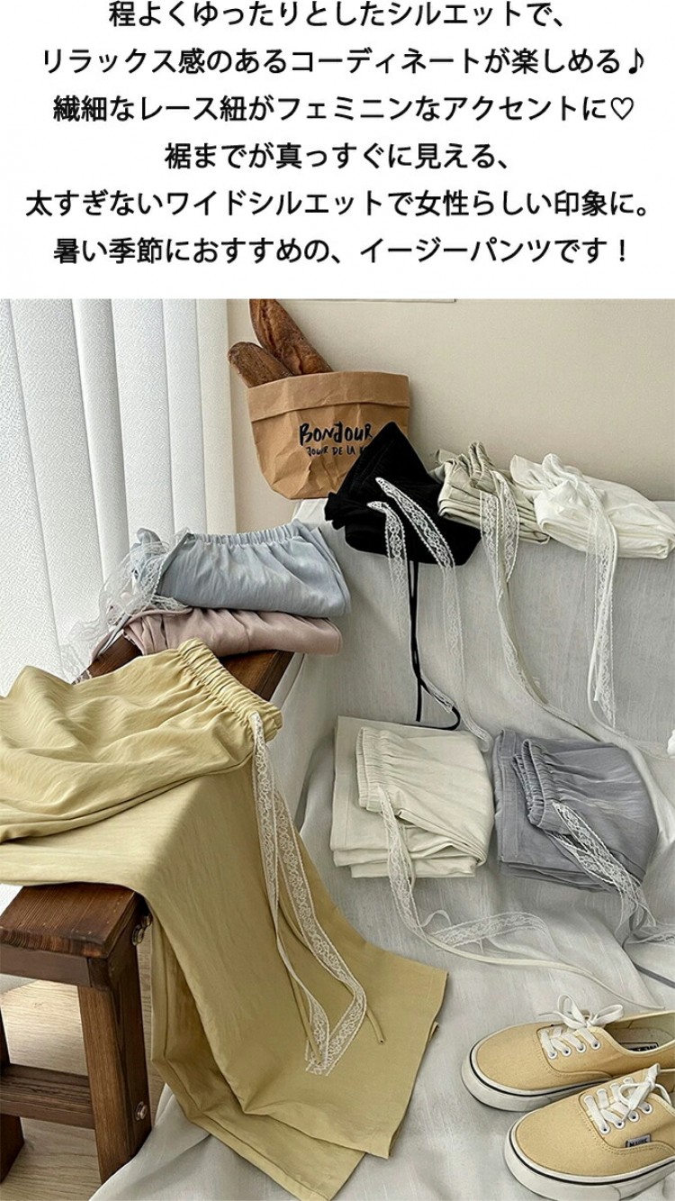 イージーパンツハイウエストパンツ レデ ホワイト ブルー ピンク イエロー ブラック