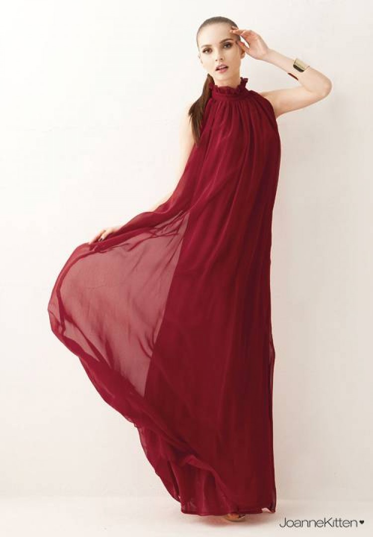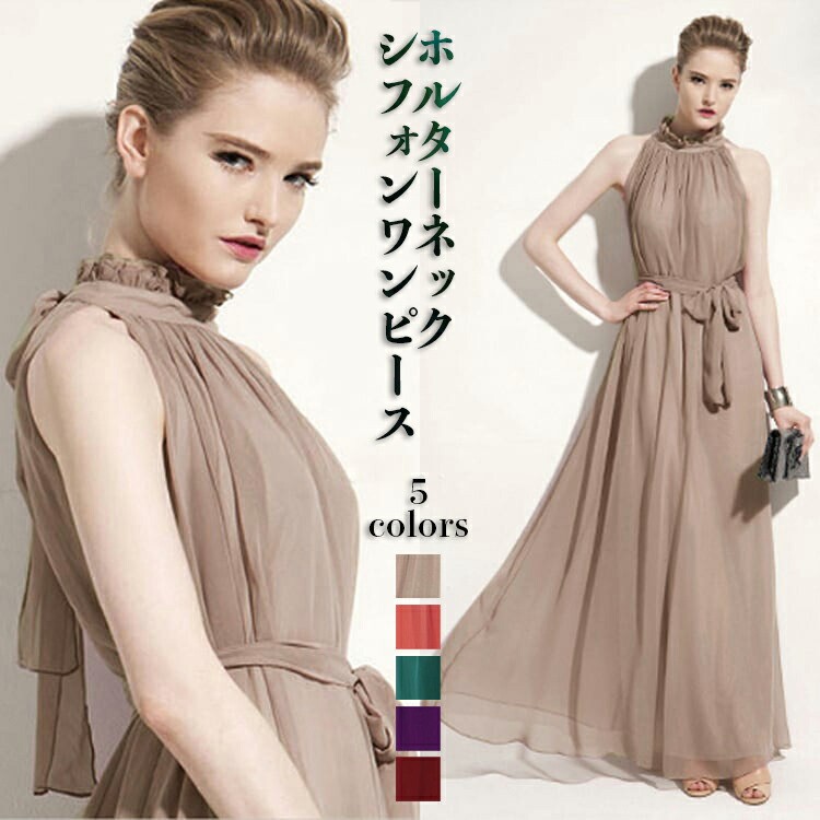 ホルターネック ドレス ワンピース ロ スイカレッド ワインレッド カーキ グリーン ブラック パープル ピンク ネイビー