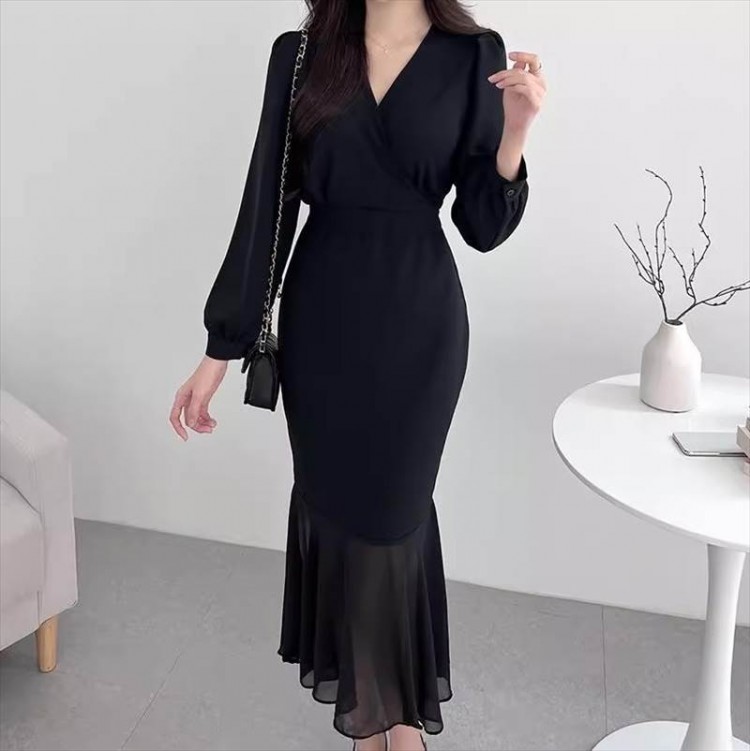 レディース ワンピース フレア ミモレ ロング 長袖 パフスリーブ Vネック カシュクール タイト マーメイド フェミニン ウエストマーク ハイウエスト 切り替えデザイン 大人可愛い きれいめ 上品 おしゃれ かっこいい レトロ こなれ感 モダン フォーマル 抜け感 都会的 セクシー 無地 春 秋 入学式 入園式 卒業式 卒園式 授業参観 ママ お出かけ イベント レストラン 休日 発表会 体型カバー 普段使い 着回し モテ 清楚 フリーサイズ 黒 ブラック アプリコット ベーシックカラー 大人カラー