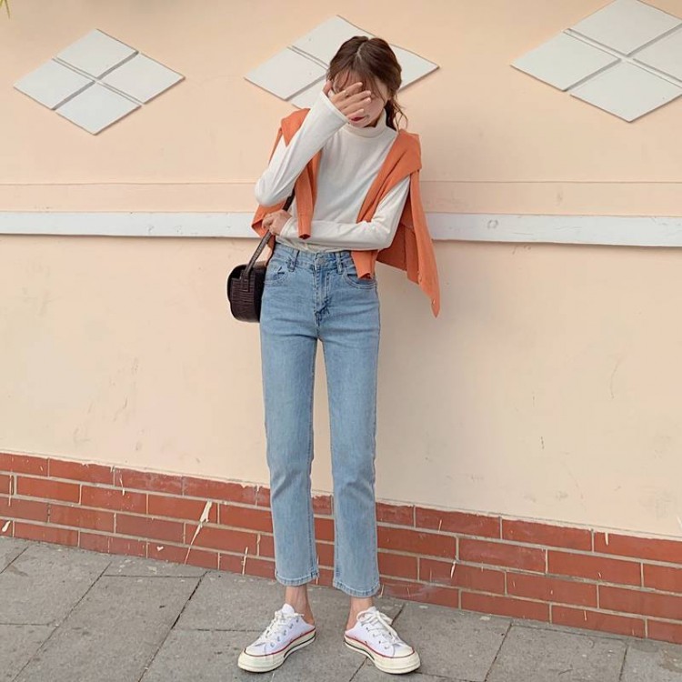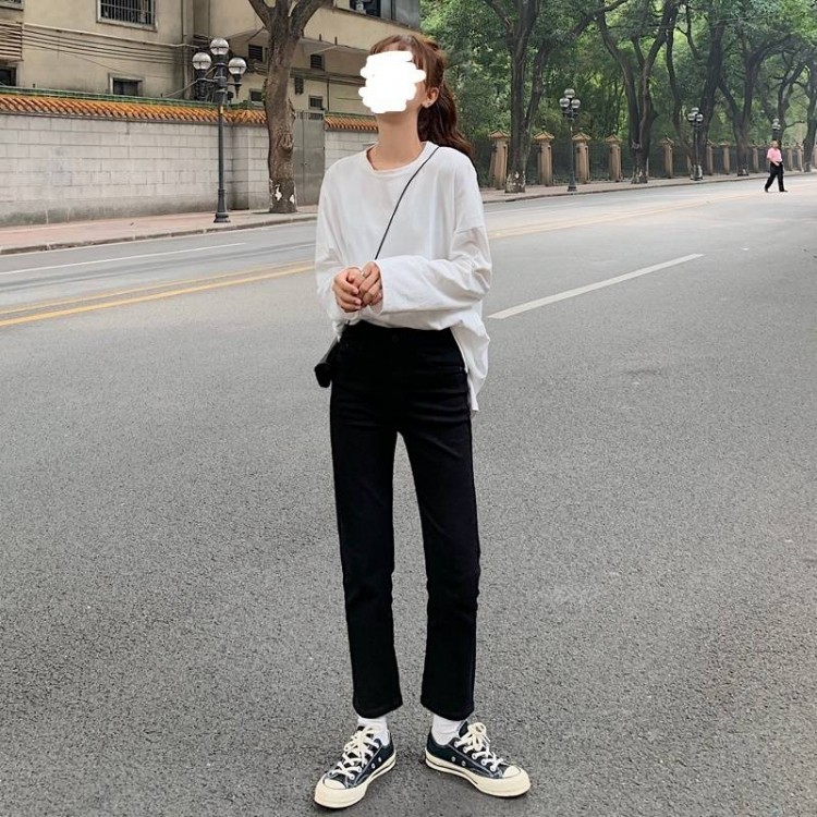 デニムパンツ 春 秋 レディース Gパ ブラック ライトブルー S M L