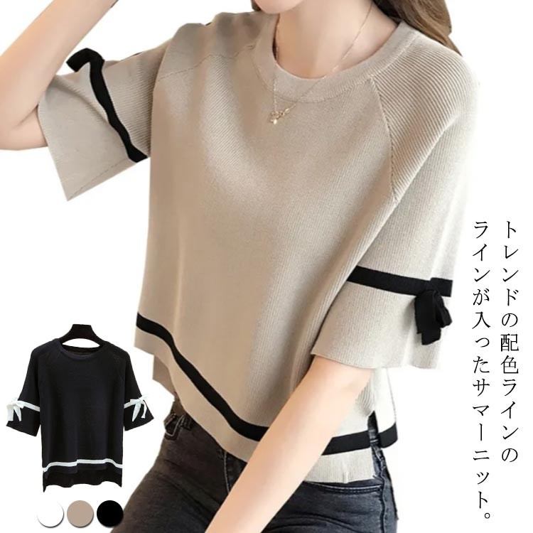 サマーニット レディース カットソー トップス Tシャツ カットソー 特集 ベージュ ホワイト ブラック S M L XL 2XL