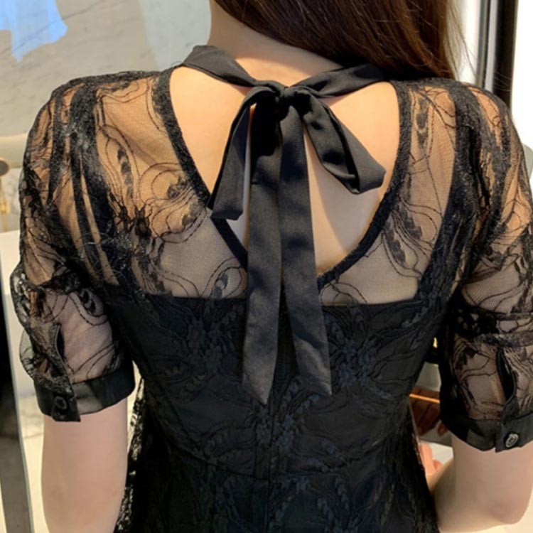 シアースリーブ ドッキングシャツ ボウタイシャツブラウス