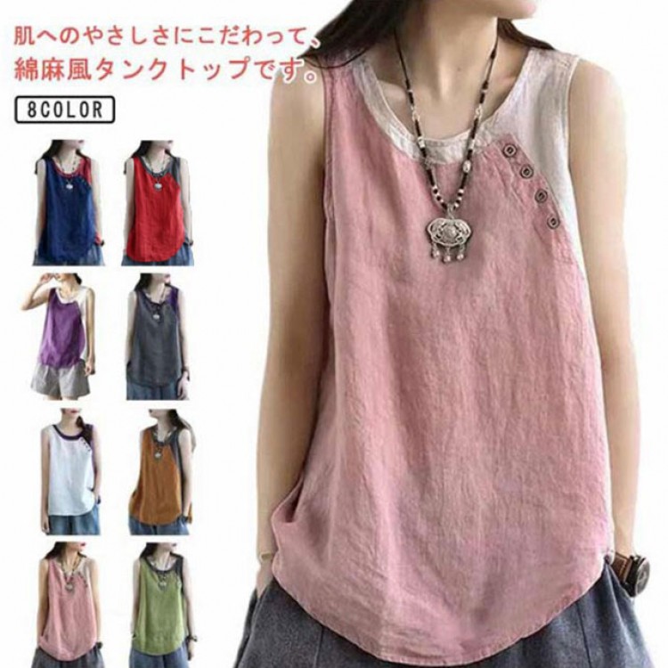綿麻風 タンクトップ レディース サマ レディースファッション 早い者勝ち カラー1 カラー2 カラー3 カラー4 カラー5 カラー6 カラー7 カラー8 M L XL 2XL 3XL 4XL