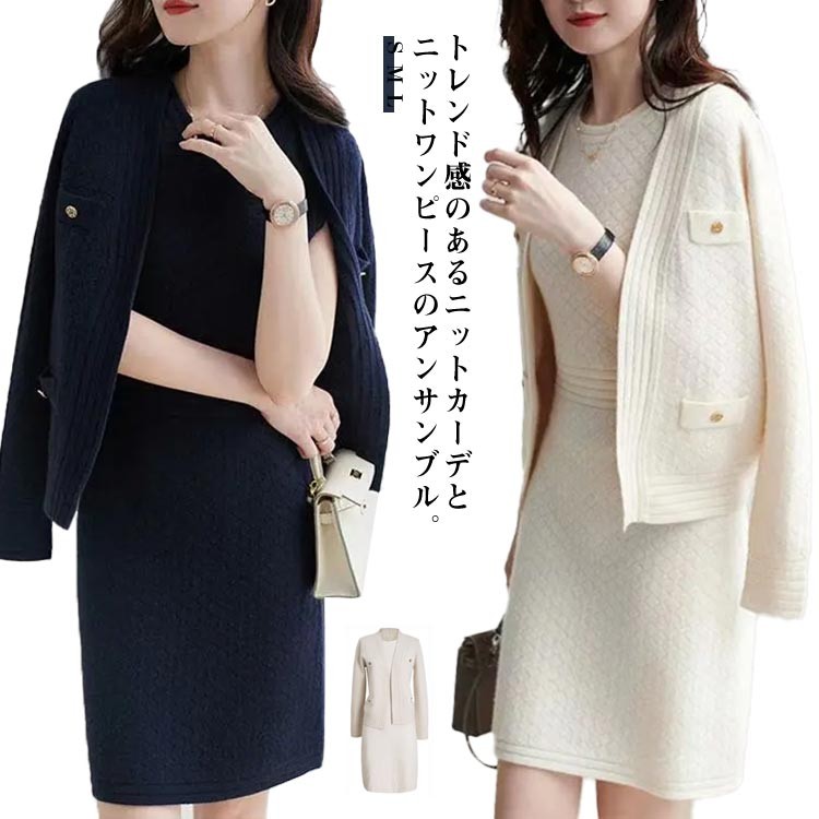 春ニット レディース セットアップ ニ レディースファッション 新登場! ホワイト ネイビー S M L
