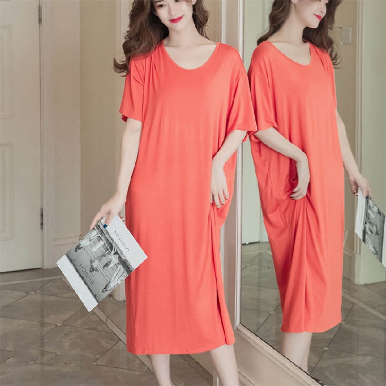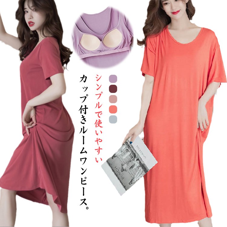 ルームワンピ 涼しい ワンピース 半袖 ピンク オレンジ ブルー レッド パープル M L XL 2XL