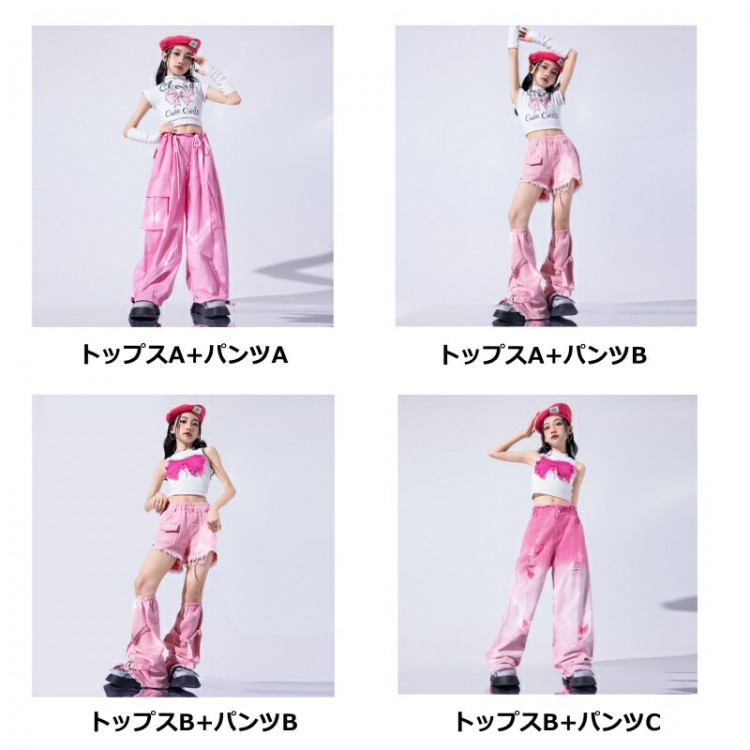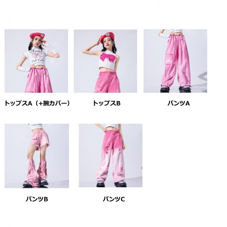キッズ ダンス衣装 セットアップ 半袖 トップス ニット セーター ニットキャミソール 特集 トップスA(+腕カバー) トップスB パンツA パンツB パンツC トップスA+パンツA トップスA+パンツB トップスB+パンツB トップスB+パンツC 110 120 130 140 150 160 170 180