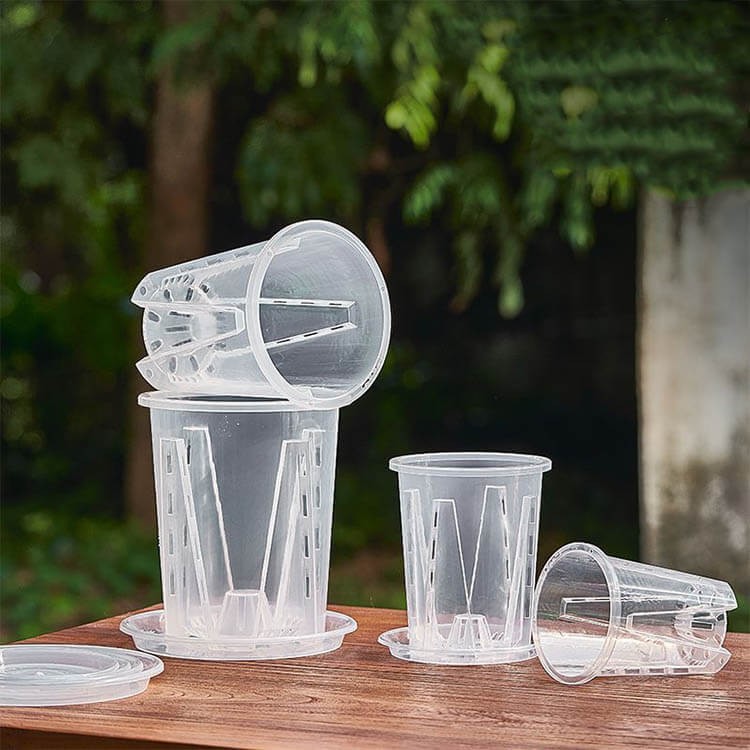 【排水設計】穴の開いた蘭の鉢は、蘭の自然な成長条件を模倣しています。各蘭の鉢には、植物の根に空気循環を提供し、健康な植物の成長のために余分な水を排出するための多くの排水穴があります。