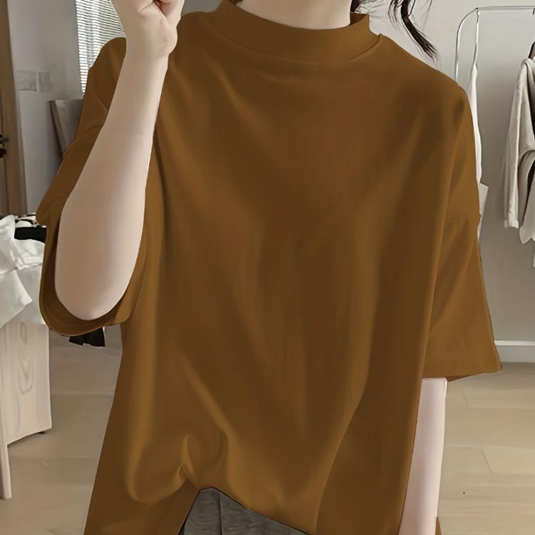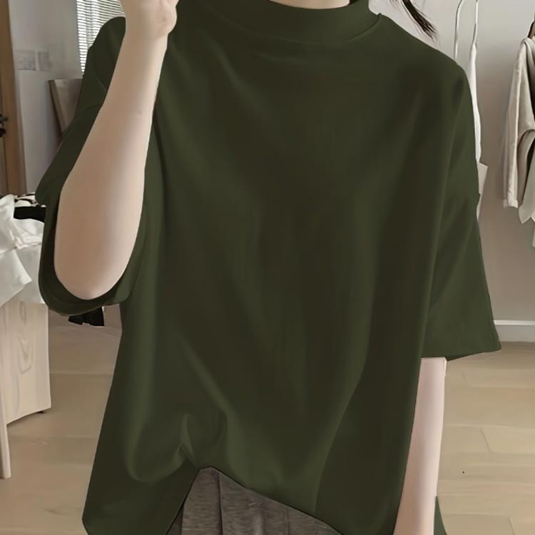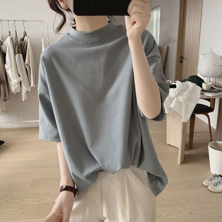 チハイネック Tシャツ ハイネック 綿 レディースファッション 特集 ブラック ホワイト ブルー グレーブルー キャラメル カーキ M L XL 2XL 3XL