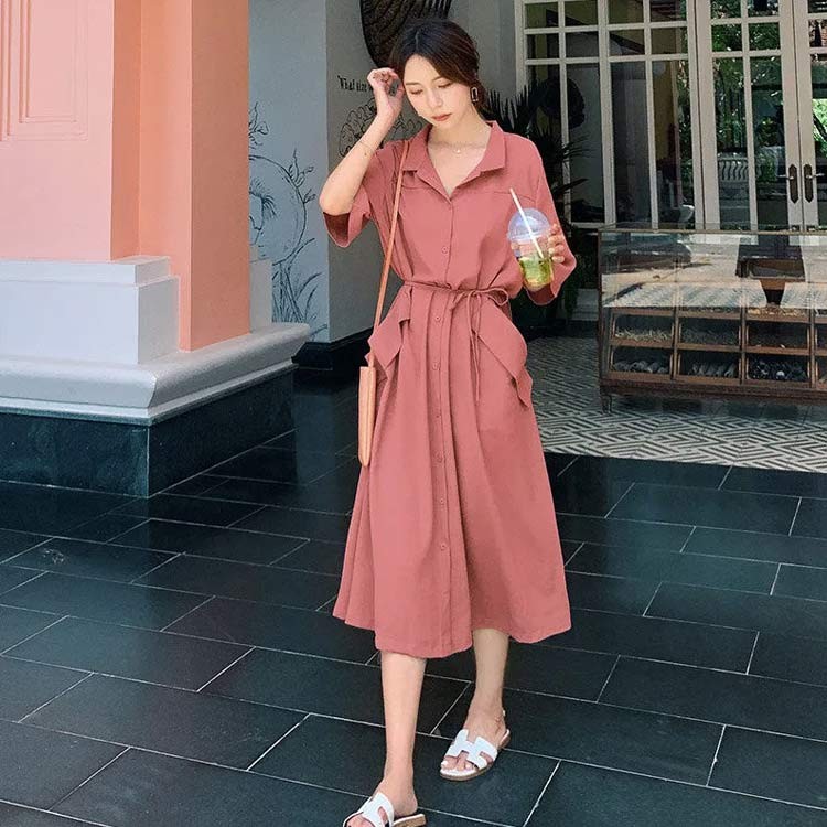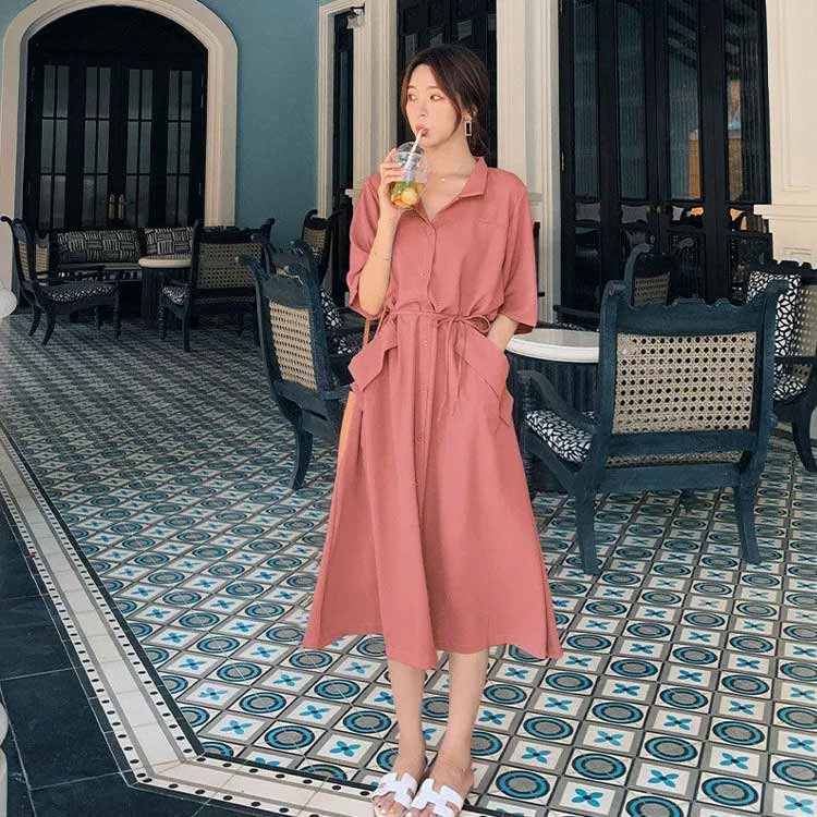 シャツワンピース 高見え きれいめ 半 レッド イエロー パープル S M L XL 2XL