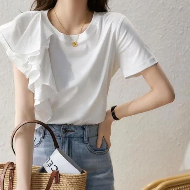 フリル ブラウス レディース カットソ レディースファッション 特集 ホワイト ブラック S M L XL 2XL