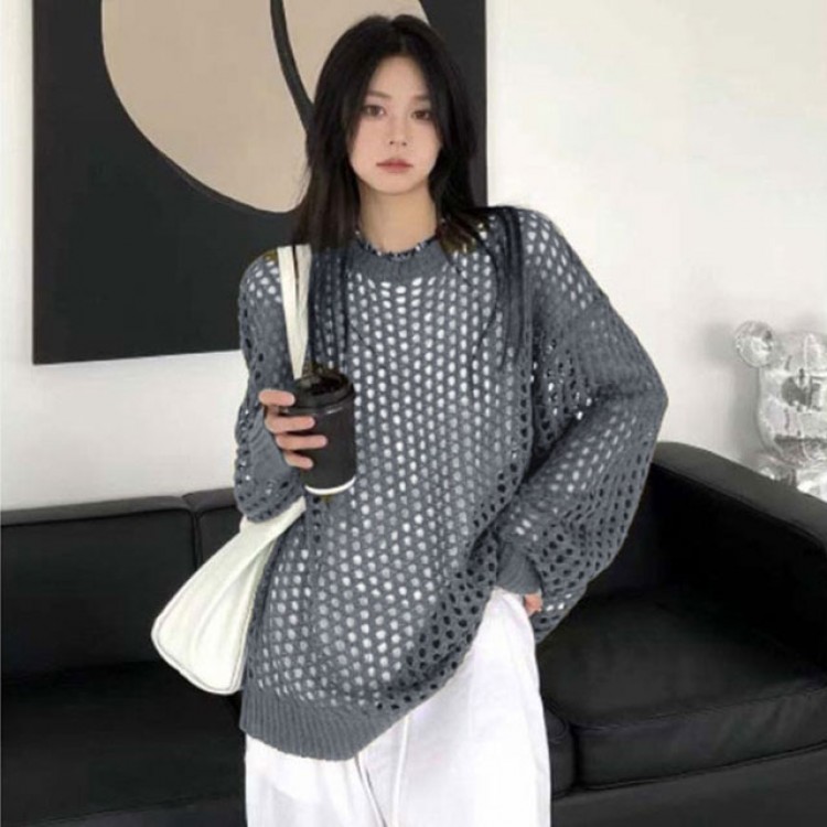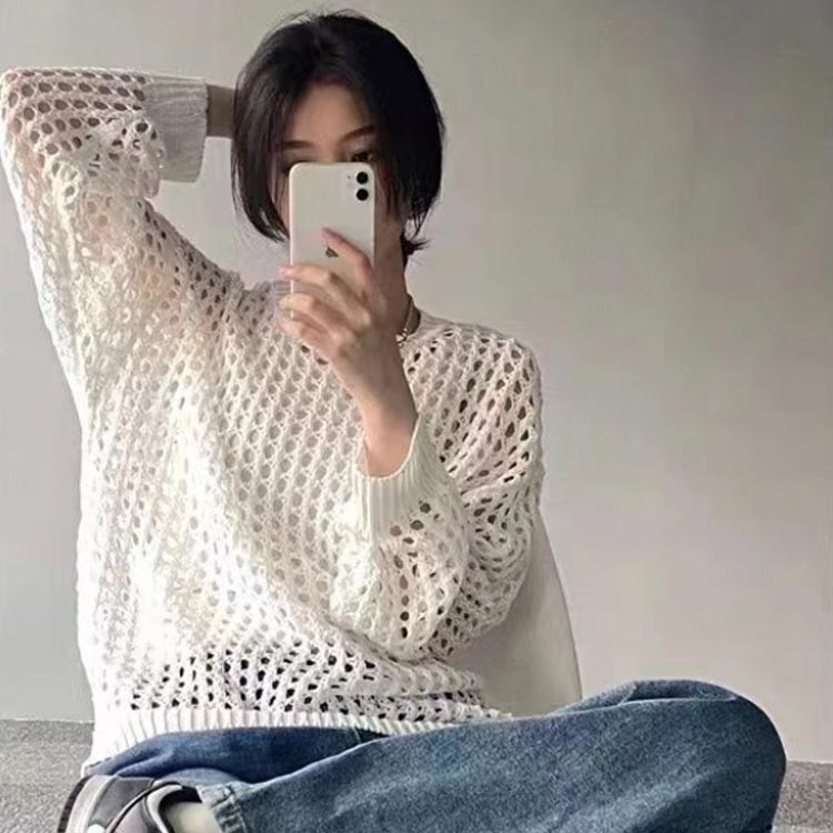 透かし編みニット 体型カバー クルーネ レディースファッション 早い者勝ち ホワイト ブラック グリーン グレー M L XL 2XL