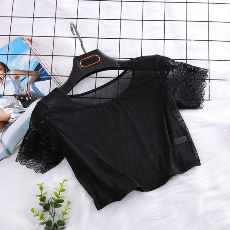 フリル袖 透け感 半袖 インナー 付け トップス Tシャツ カットソー 人気 ホワイト ブラック ベージュ S M L XL 2XL 3XL