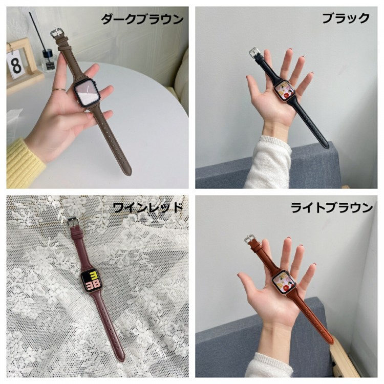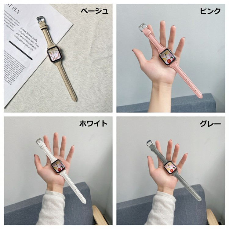 Apple watch バンド 38m ベージュ ピンク ホワイト グレー ダークブラウン ブラック ワインレッド ライトブラウン ライトブルー グリーン 38/40/41mm 42/44/45/49mm