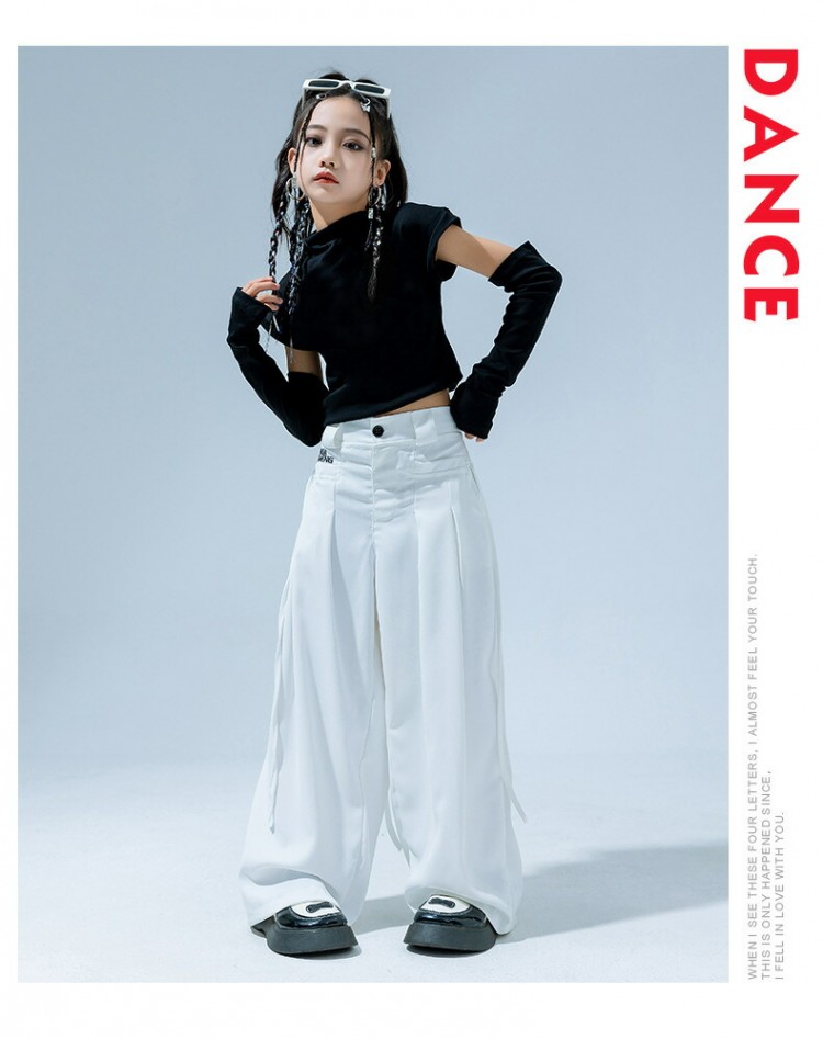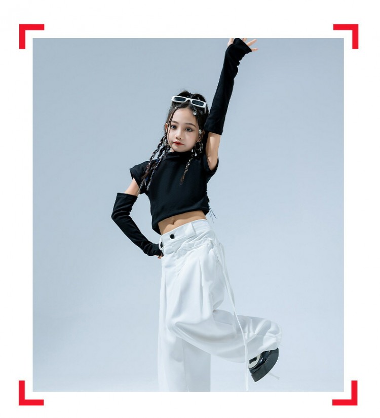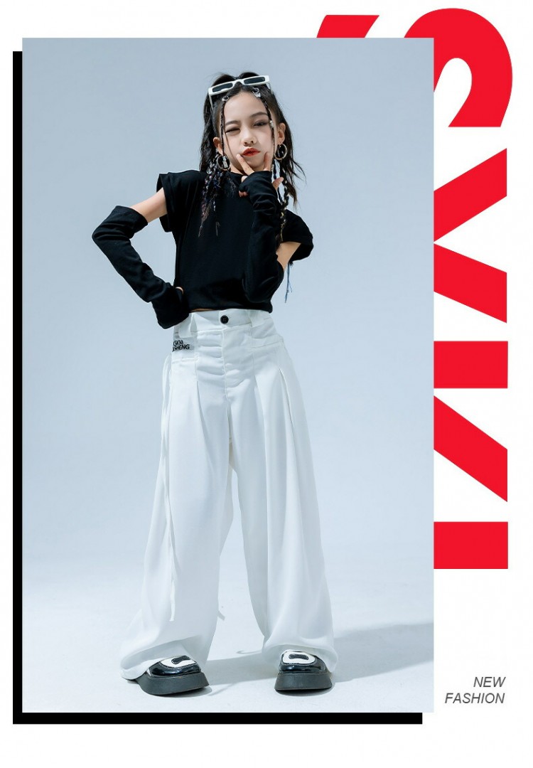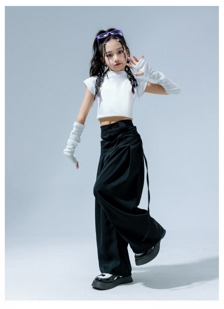 キッズ ダンス衣装 セットアップ かっ レディースファッション 通販 白トップス単品(腕カバー付き) 黒トップス単品(腕カバー付き) 白パンツ単品 黒パンツ単品 110 120 130 140 150 160 170 180