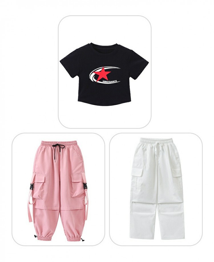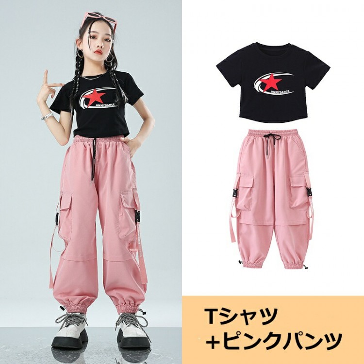 キッズ ダンス衣装 パンツ イベント レディースファッション 人気 Tシャツのみ ホワイトパンツのみ ピンクパンツのみ Tシャツ+ホワイトパンツ Tシャツ+ピンクパンツ 110 120 130 140 150 160 170 180
