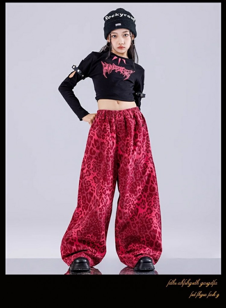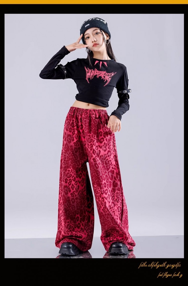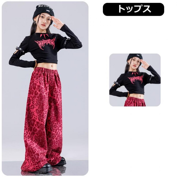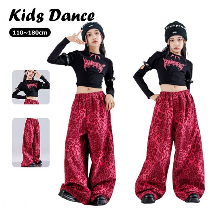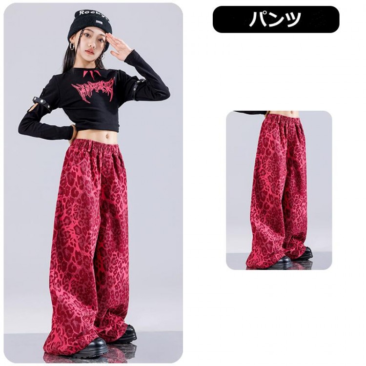 キッズ ダンス衣装 へそ出し ヒョウ柄 レディースファッション 特集 トップスのみ パンツのみ トップス+パンツ 110 120 130 140 150 160 170 180