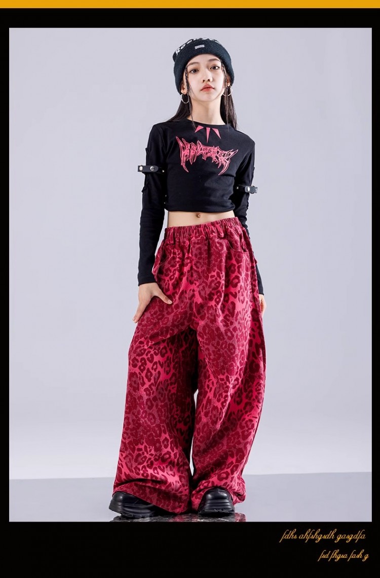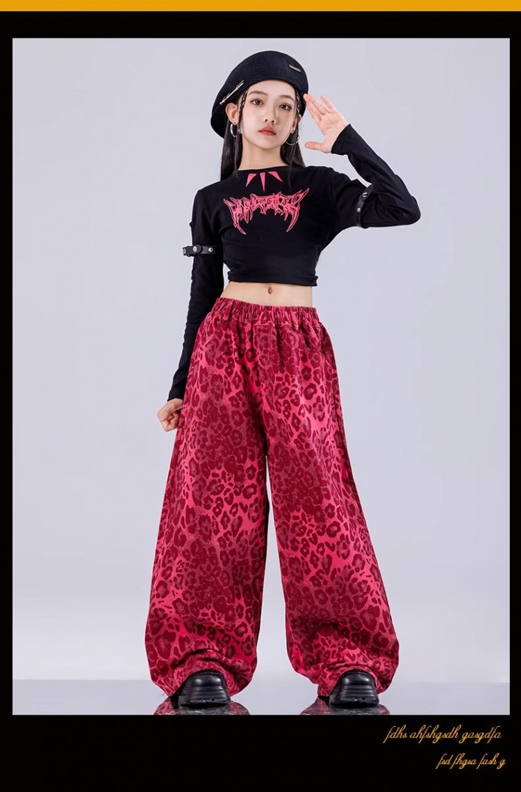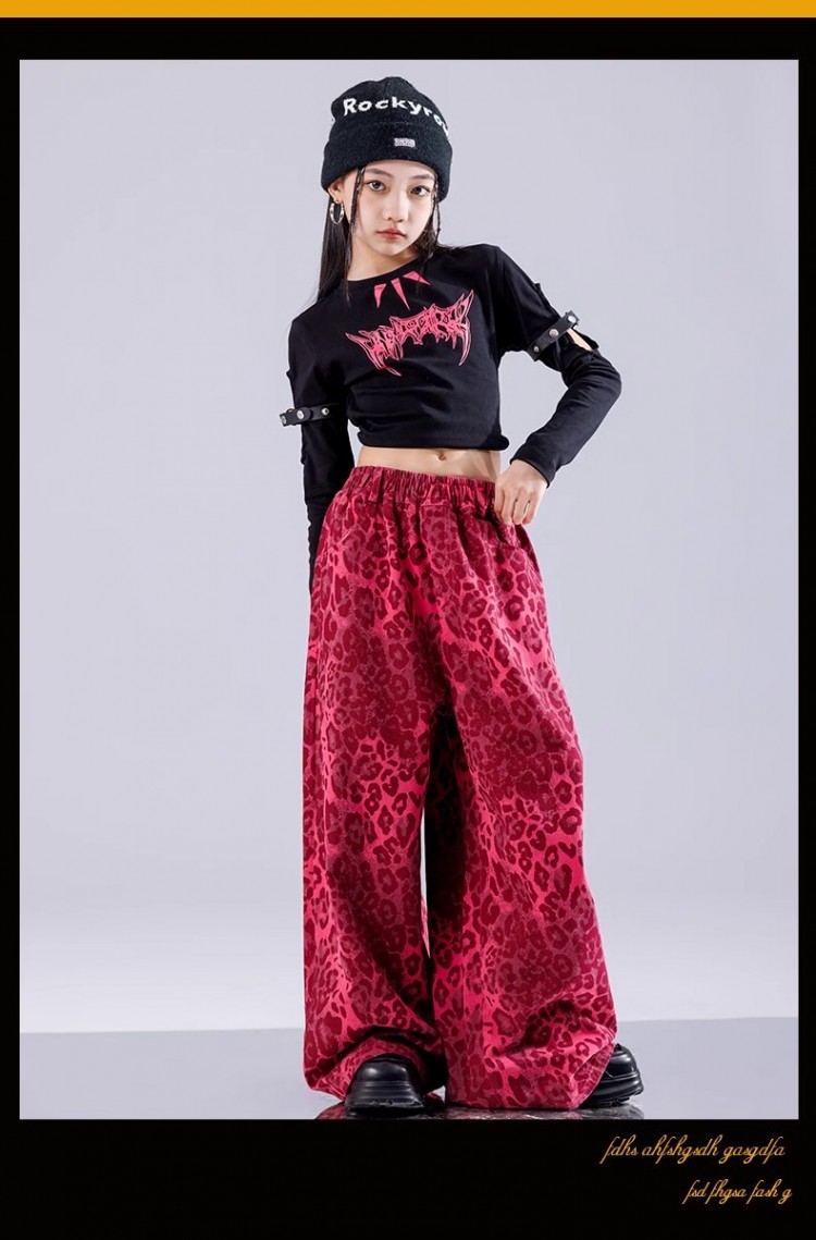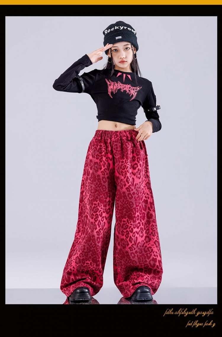 キッズ ダンス衣装 へそ出し ヒョウ柄 レディースファッション 特集 トップスのみ パンツのみ トップス+パンツ 110 120 130 140 150 160 170 180