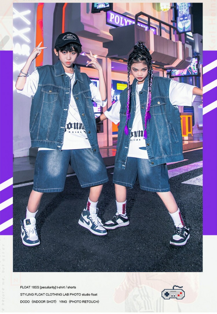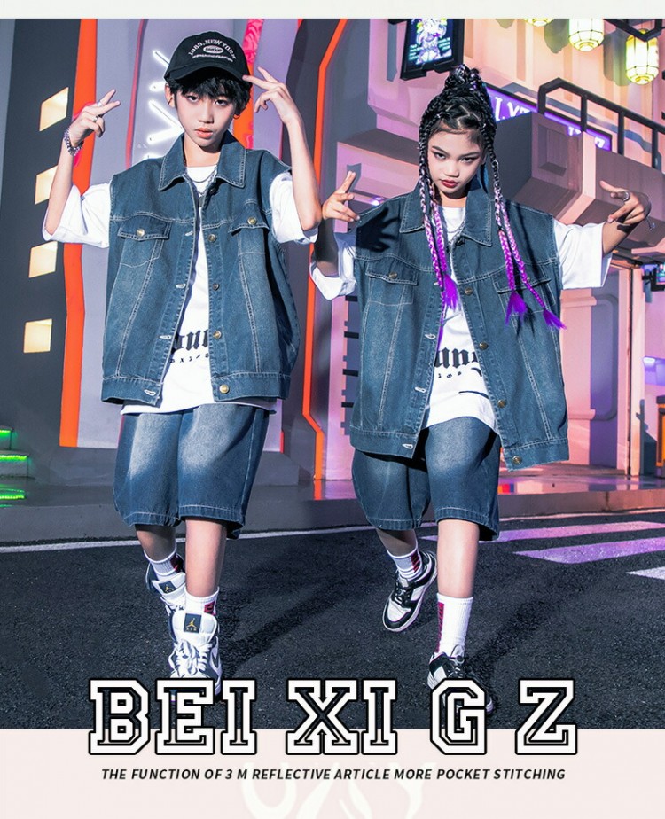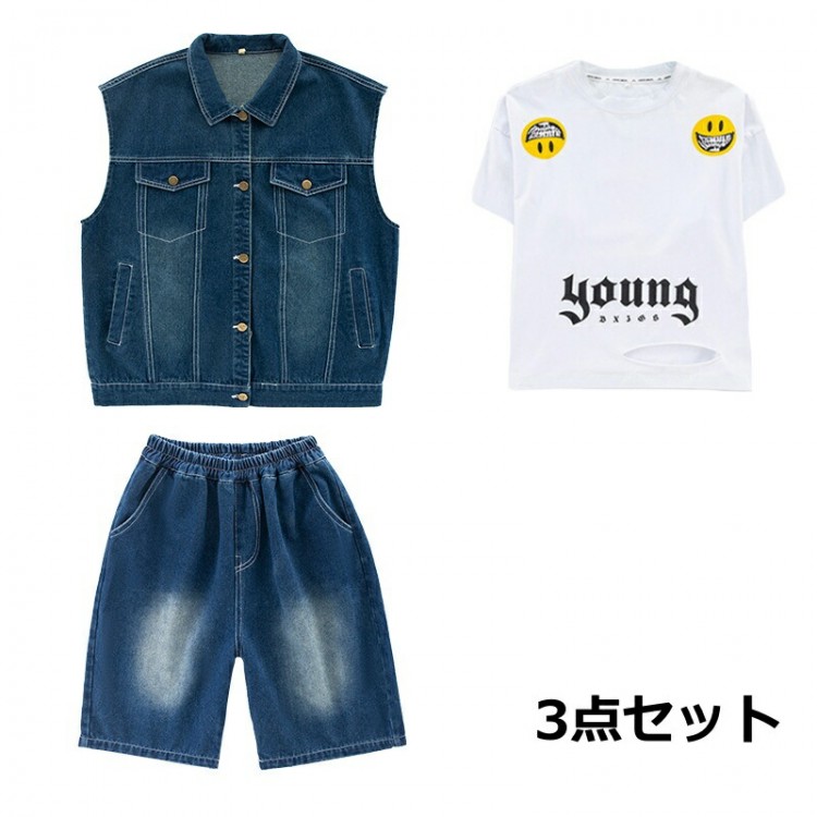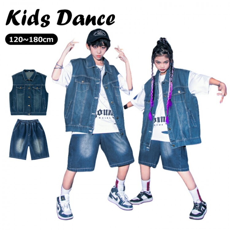 キッズ ダンス衣装 ベスト デニムパン レディースファッション 人気 2点セット 3点セット 120 130 140 150 160 170 180